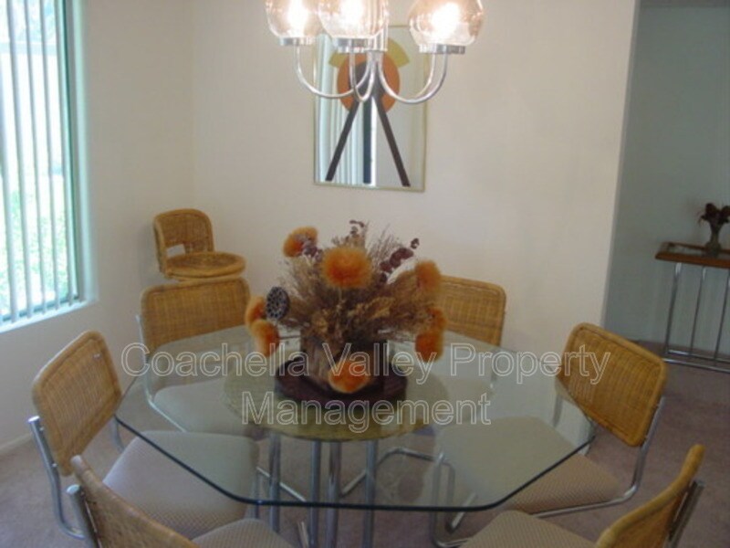 Sunrise Racquet Club is a gated condo community that is located in the central Palm Springs area. This Seasonal rental is a single story end unit with an attached 1 car garage. The condo has 3 bedrooms + 2 bathrooms. The primary bedroom has a king bed, private bathroom, walk-in closet, flat screen TV. Guest bedroom #1 has a queen bed and guest bedroom #2 has sleeper sofa. The living room has access to back patio that has propane BBQ + table & chairs, living room has flat screen TV, DVD player. Sunrise Racquet Club has a clubhouse, tennis courts, pools & spa, plus a lovely water feature at the entrance to the complex. Close to downtown Palm Springs, casino and airport. $3750 Monthly Rent During from November to April Call regarding summer discount from May to October. Deposit is Half a months Rent Balance of rent due 60 days prior to arrival. $395 Nonrefundable Cleaning Charge $275 Service Charge All Applicants must have the following: No Prior Evictions No Previous Felonies