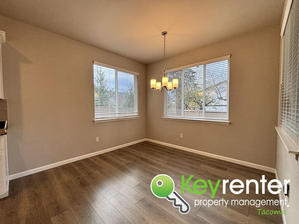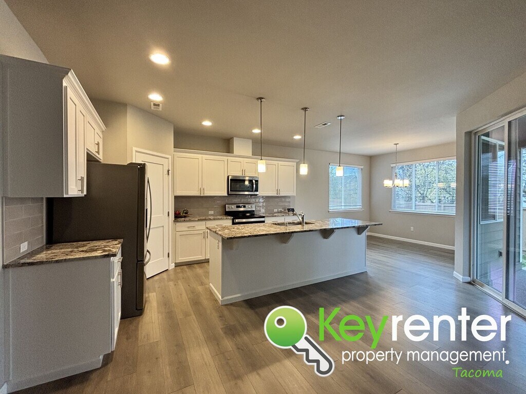 Welcome to this beautiful Tacoma rental home located at 18002 38th Ave Ct E, offering a spacious and modern living experience in a desirable HOA community near Highway 512. This 4-bedroom, 2.5 bath home features 2,482 square feet of thoughtfully designed living space with vaulted ceilings and abundant natural light throughout. The main level includes a welcoming living room with a gas fireplace, a formal dining room, and a versatile den or office space, making this home ideal for both everyday living and working from home in the Tacoma and Spanaway area. The open concept kitchen is designed for both style and functionality, featuring granite countertops, a large island, and stainless-steel appliances that complement the generous cabinet space. The kitchen flows seamlessly into the main living areas, creating an inviting layout for entertaining. A convenient half bath is located downstairs, along with access to the attached two car garage and driveway parking. Modern upgrades such as a tankless water heater add to the efficiency and comfort of this well-maintained Tacoma rental home. All four bedrooms are located upstairs, each offering a walk-in closet for ample storage. The spacious primary bedroom serves as a private retreat with its own walk-in closet and a luxurious five-piece primary bathroom featuring a double vanity, soaking tub, and separate shower. A full hallway bathroom serves the additional bedrooms, and the upstairs laundry room includes a washer and dryer for added convenience, making daily routines simple and efficient. Outside, enjoy a fully fenced backyard with a covered patio that is perfect for relaxing or entertaining year-round. Situated on a corner lot, this home provides added privacy while remaining close to shopping, dining, schools, and recreation. The location offers quick access to Highway 512 and is just minutes from Safeway, Fred Meyer, local gyms, Spanaway Lake High School, Sunrise Village Shopping Center, and Sunrise Community Park. With easy commutes to JBLM, South Hill Mall, Pierce College, the Puyallup Sounder Station, and even Mt. Rainier National Park, this spacious 4-bedroom rental home in Tacoma offers an ideal combination of comfort, convenience, and lifestyle. Visit our website today to schedule your own private viewing! HOME FEATURES: • Home Video Tour: • Vaulted ceilings • Plenty of natural lighting • Den/office space • Living room • Gas fireplace • Dining room • Open kitchen with island • Granite countertops • Stainless-steel appliances • Half bath downstairs • Upstairs laundry room • Washer and dryer included • All four bedrooms upstairs • Each bedroom features walk-in closet • Full bath upstairs in hallway • Master bedroom features walk-in closet • 5-piece master bathroom featuring double vanity, bathtub, and shower • Fully fenced backyard • Covered patio • Attached 2-car garage • Driveway • Tankless water heater COMMUNITY FEATURES: • HOA community • Corner lot • Near Highway 512 • Spanaway Lake High School (5 minutes) • Safeway & Fred Meyer (5 minutes) • Local gyms (5 minutes) • Emerald Ridge High School (10 minutes) • Sunrise Village Shopping Center (10 minutes) • Sunrise Community Park - playground, splash pad, dog park (10 minutes) • Clover Park Technical College (10 minutes) • South Hill Mall (15 minutes) • Highway 512 (15 minutes) • The McMillan Trailhead (15 minutes) • Pierce College (20 minutes) • Puyallup Fairgrounds – Washington State Fair (20 minutes) • Puyallup Sounder Transit Station (20 minutes) • JBLM (20 minutes) • University of Washington Tacoma (25 minutes) • Lake Tapps (30 minutes) • Mt. Rainier National Park (1 hour) THE BASICS: • Lease Term: 1 Year • Pet Policy: Only Small dogs, No cats allowed • Tenant responsible for all utilities • Tenant responsible for all landscaping IMPORTANT THINGS YOU SHOULD KNOW: • No smoking on the premises • Application processing time is 1-3 business days. • Please review Keyrenter's Application Criteria prior to applying. • $50 N/R Application Fee per applicant 18 or older • $30/Monthly Rental Admin Fee • Renters & $100k General Limited Liability Insurance Required • Security deposit: $3,300 • $50 monthly pet fee + 1x $300 additional N/R fee per pet (if applicable) DISCLAIMER: All information deemed reliable but not guaranteed and are subject to change. Keyrenter DOES NOT advertise on Craigslist, nor do we ask for payment to view our properties. Protect yourself from scammers!