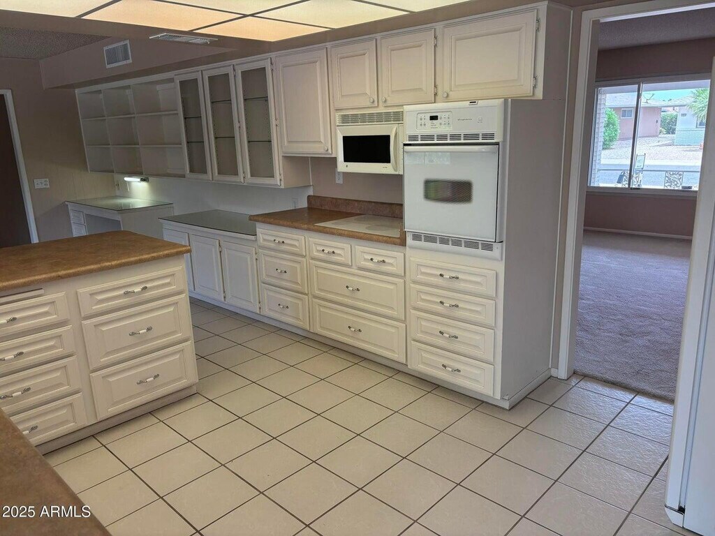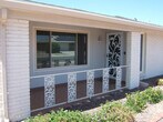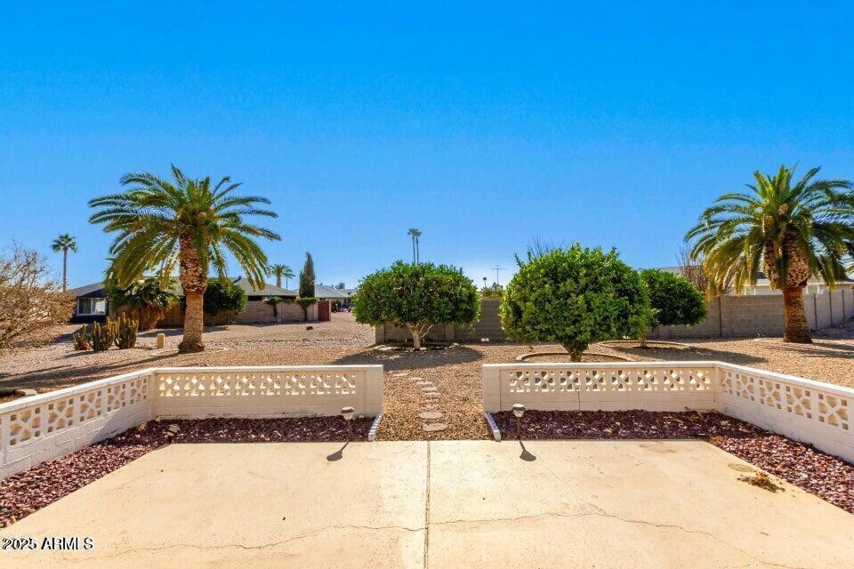 This cozy home features tile flooring in the main areas and carpet in the bedrooms,with a comfortable living and dining area. A separate hobby room offers built-in desk space,shelving,and plenty of room for an office or craft setup. The kitchen includes white cabinetry,a built-in electric cooktop,built-in appliances,and a breakfast bar. The primary suite offers a walk-in closet and en-suite bath. Outside,enjoy desert landscaping,mature orange trees (with help from the neighborhood),and a covered patioperfect for relaxing or entertaining. Conveniently located near shopping,dining,and everyday essentials. MLS ID 7019429