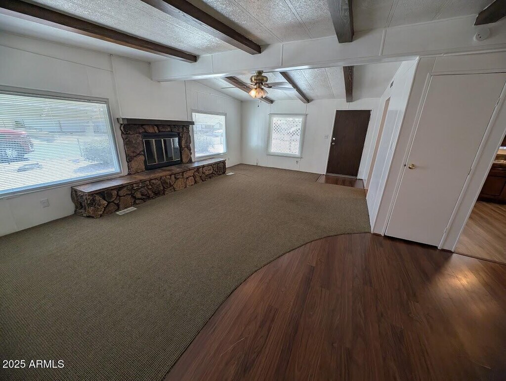 Super clean and updated North Phoenix home in the Seven Palms community* 2 large bedrooms,2 bathrooms* Greatroom floorplan with vaulted ceilings,exposed wood beams & stone fireplace* New dual pane windows & blinds* Stunning fully renovated kitchen including custom cabinets with easy-close hinges,newer appliances,designer countertops* Wood type flooring throughout with carpet in the greatroom* Front and back yards are fenced* 3 car covered carport* 2 metal storage sheds* Community offers multiple pools,park!!!