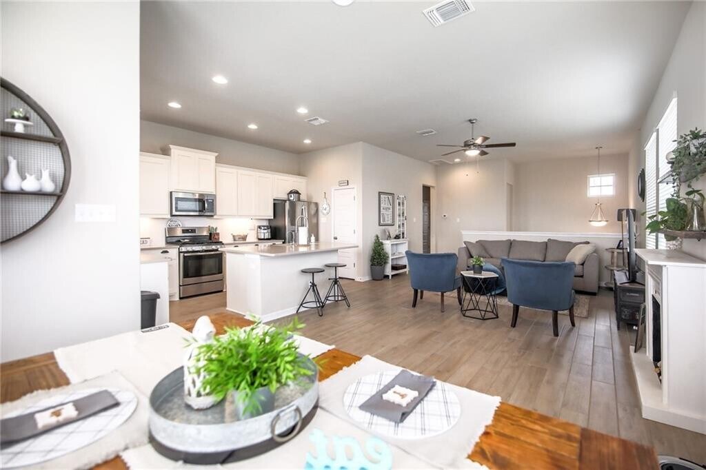 You’ll note the modern finishes as you step through the front door, including shaker style cabinets with soft-close drawers, subway tile backsplash, Quartzite countertops, and LED under cabinet lighting. Upgraded wood-like tile flows throughout the entry, family, kitchen & breakfast areas. An abundance of windows for natural light. Primary bath has shower tile to the ceiling & plenty of extra storage. Water Softener Loop and dual stage water drinking system. Landlord will provide refrigerator, washer & dryer. Highly acclaimed Pflugerville ISD Schools. Easy access to SH130/ SH45 and numerous shopping, dining and entertainment options! Applications online at MLS ID 9902203