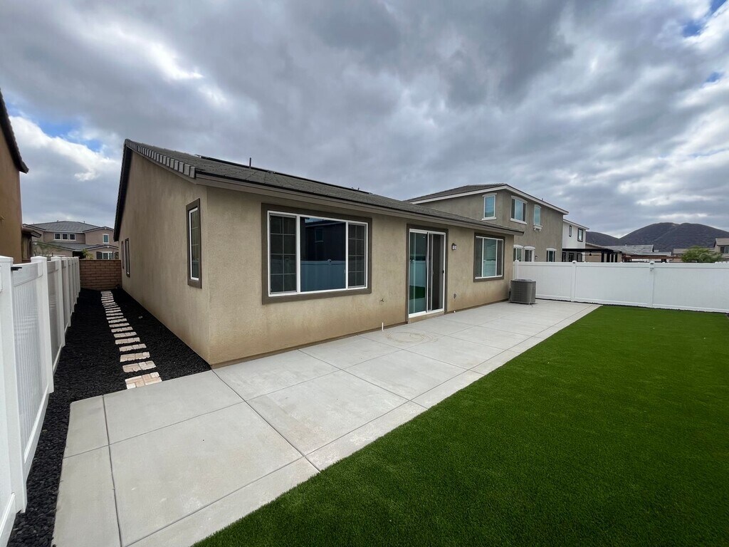 Welcome to 1801 Ace Street — a stunning 3-bedroom, 2.5-bath home offering comfort, efficiency, and style in one of Hemet’s most desirable neighborhoods. This home features an open-concept floor plan filled with natural light, perfect for both relaxing and entertaining. The modern kitchen flows seamlessly into the spacious living and dining areas, creating an inviting atmosphere for family and friends. Enjoy low utility costs with solar panels and a Tesla Power Wall, providing energy efficiency and peace of mind. The backyard is beautifully designed with low-maintenance turf, offering the perfect outdoor space for play or relaxation. Located in a quiet, family-friendly neighborhood close to schools, shopping, and parks, this home combines convenience with modern living. Don’t miss this opportunity to make this beautiful, energy-efficient home yours! ***Prices are subject to change. Information provided is deemed accurate but not guaranteed. Availability/move-in dates are approximate and subject to change. ***
