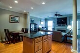 Beautiful two bedroom townhome with en-suite baths sits atop Cool Springs offering you exceptional views from the large deck! 9-foot ceilings, hardwood cabinets/floors, granite counter tops, stainless appliances. Lots of parking with large one car garage, driveway and overflow parking steps from the front door. Washer/dryer provided. Community amenities include: clubhouse, pool, and tennis court.