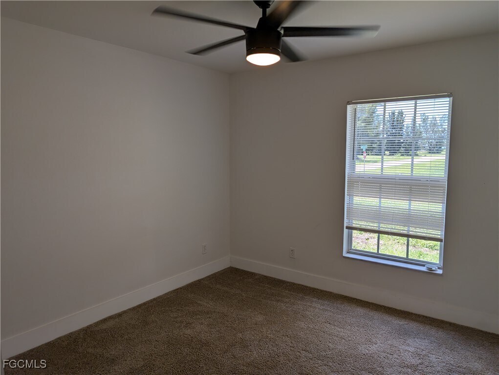 Off Santa Barbara,3/2 with DEN with French Doors. Tile floors in the main area and carpet in the bedrooms. Split bedroom plan. Breakfast bar looks onto the spacious family room and large lanai. Screened lanai. Pets accepted with owner approval and non-refundable pet fee. Ready for move-in now.