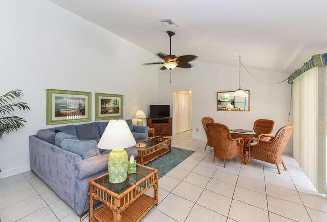 Available May 4 to October 15, 2026 Off-Season Price and AVAILABLE SEASON 2027! --....Single level villa-no stairs and lives like a little house! Updated kitchen. Furnished/turnkey Immaculate 2Br 2Bath large courtyard with Northeast Exposure with lots of privacy. Offers WiFi. Conveniently located on US Hwy 1 and Ocean Way in Walk to the Beach Location, bicycle up the Riverwalk pathway to all of those shops/restaurants.. Such an awesome location. Gated community surrounded by beautiful mature landscaping. Vaulted ceilings, great rooms, pleasantly breezy patios, & bright living areas with more than enough space. Master bath offers Roman tub & guest bath