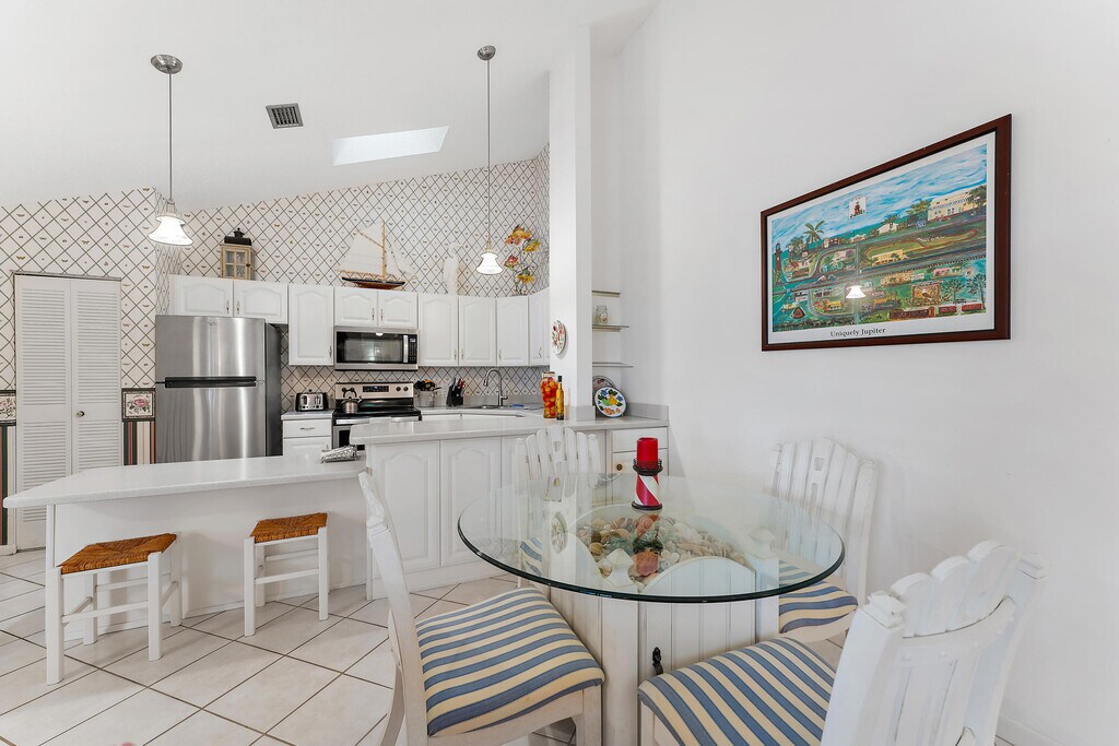 Available 1/1/27 - 4/30/27. One story villa with private Courtyard. Located east of US Hwy 1 - close to Jupiter Beach. Community Pool. Gated Community. Tile & Laminate floors. Propane grill for outdoor barbeques. King in Primary BR w/ensuite. Queen in 2nd BR. Walk in Shower in 2nd Bathrm. 2 designated parking spaces in front of unit. 12.5% tax: $300 Exit Clean Fee; $100 JLR Compliance Fee. $150 Application Fee to Condo Assn. Located close to Restaurants,shopping,Riverwalk Boardwalk along the Intracoastal to Harbourside Entertainment Venue. Heated Community Pool. 3 mo term: $6200/Mo; 2 month term $6500/Mo. Sorry no pets or pick up trucks. MLS ID B26020489