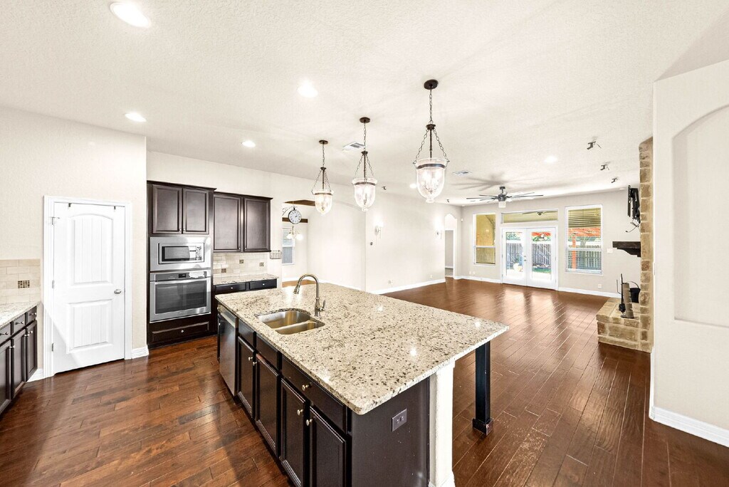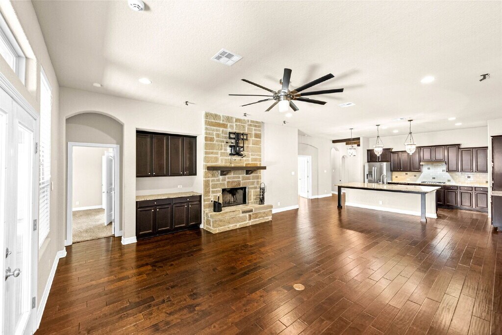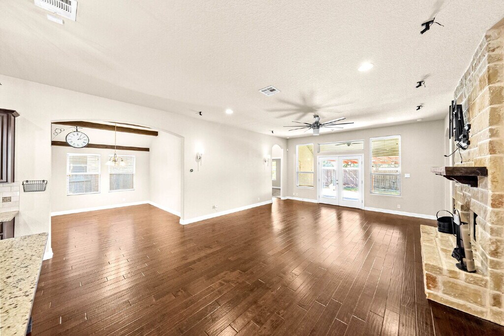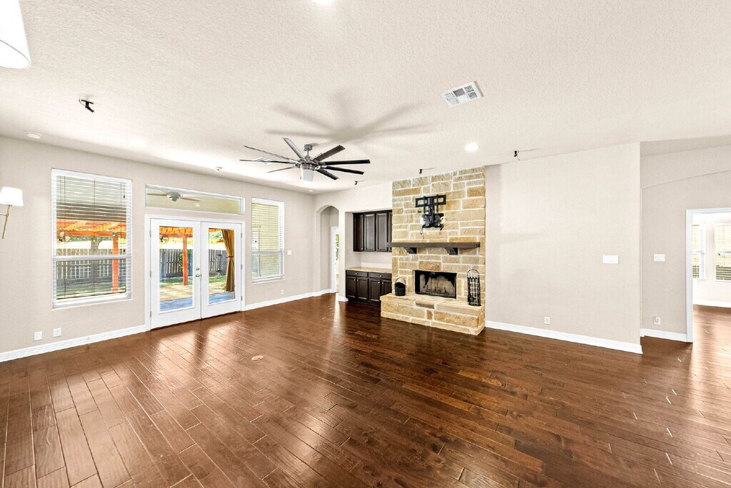 NEW RENTAL ALERT!!! READY NOW!!! WEBSITE w/ PHOTOS: VIDEO TOUR: 3D MATTERPORT: APPLY HERE: PET SCREENING: SCHEDULE SHOWING HERE: PET POLICY, HOW TO QUALIFY, SCREENING CRITERIA Here: Welcome to your Hill Country retreat, where everyday living meets timeless design and peaceful surroundings. This beautifully designed single-story home offers four bedrooms, three bathrooms, a private study, and an additional flex space that easily adapts to your lifestyle—whether you work from home, need a playroom, or want a quiet reading nook with a view of the trees outside. As you step inside, you are greeted by soaring ceilings and rich wide plank wood flooring that guide you through an open layout filled with warmth and light. Exposed wood beams and a handsome stone fireplace set the tone for cozy evenings, while the natural flow between living, dining, and kitchen spaces makes entertaining effortless. The gourmet kitchen is a showstopper with granite countertops, espresso shaker cabinets, stainless steel appliances, and a large island that invites conversation while meals are prepared. It’s the kind of space where friends gather for brunch or kids do homework while dinner simmers on the stove. The master retreat is a true sanctuary, complete with dual closets, separate vanities, a luxurious spa-style shower, and a soaking tub that promises the perfect escape after a long day. Each secondary bedroom offers generous space and privacy, ensuring comfort for family or guests alike. Step outside to your private backyard haven, surrounded by mature trees and designed for relaxation and connection. The covered patio flows into an extended flagstone area with a pergola and fire pit, creating a perfect setting for evening gatherings under the Texas sky. Practical touches add to the appeal, including a sprinkler system, full masonry exterior, and solar panels that help reduce utility costs. The community features a playground and park, offering even more ways to enjoy the outdoors. Located near excellent schools, shopping, and major highways, this home offers the ideal blend of tranquility and convenience. From morning coffee on the porch to evenings by the fire pit, every day here feels a little more peaceful—and a little more like home #homelabpropertymanagement #homelab #newrental #investment #rentals #sanantonio #residential #AnotherOne #family #home #listwithus #listwiththebest #thankyou #service #militarycityusa #military #zillow # #trulia #relocation #family #home #relocation #realtor #realestate