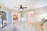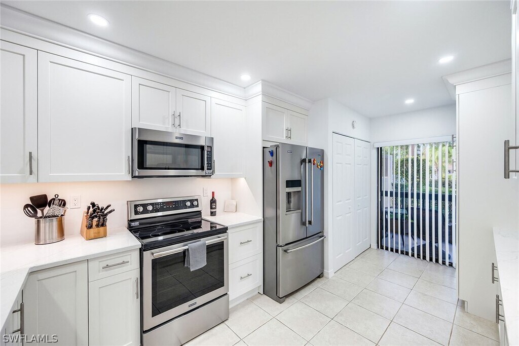 3-month minimum. This two-bedroom + den with a Murphy bed,has two full baths and is a first-floor corner unit tucked away in the beautiful community of Kings Lake. Located just 4 miles from the Old Naples beaches as well as the Fifth Avenue and Third Street shopping districts,this community offers a scenic walking trail,community pool and tennis court. Enjoy the sunrise over the lake from the back porch and sunsets from the front porch - both screened. The primary bedroom sleeps two in a king size bed. Primary bathroom has a separate vanity area as well as a walk-in shower with a grab bar. Second bedroom offers a queen size bed. The den can easily serve as a third bedroom with double doors,a closet and a Murphy bed. Two flat screen TVs. All utilities included seasonally.