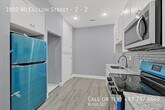 Fully renovated. Brand new everything. Has two very large rooms and an eat-in kitchen. Both rooms have closets so can be used as bedrooms. Great for roommates. College students. High ceiling. Large rooms. Washer/Dryer in the apartment. Central Air/Heating