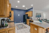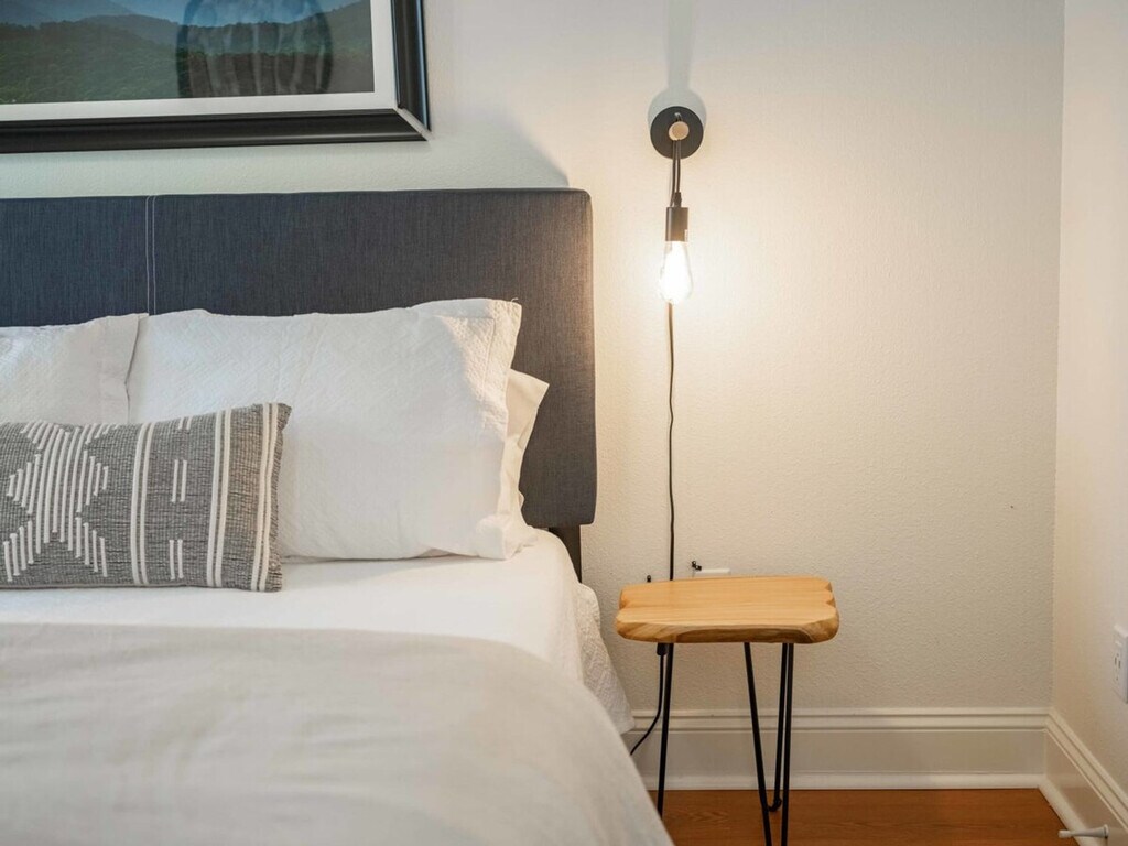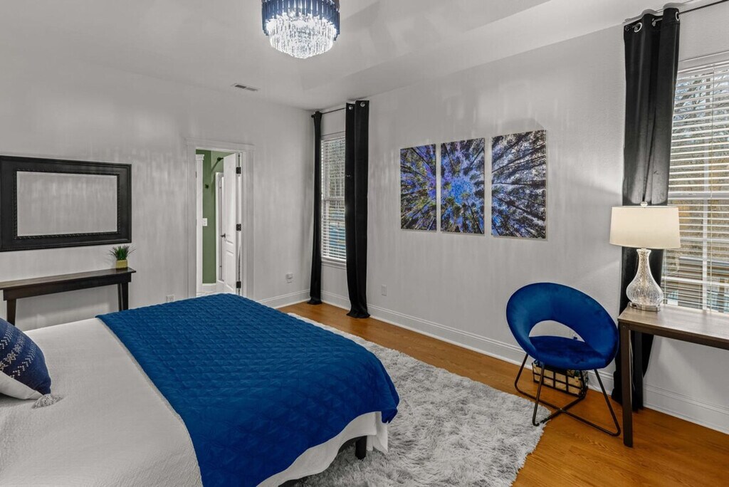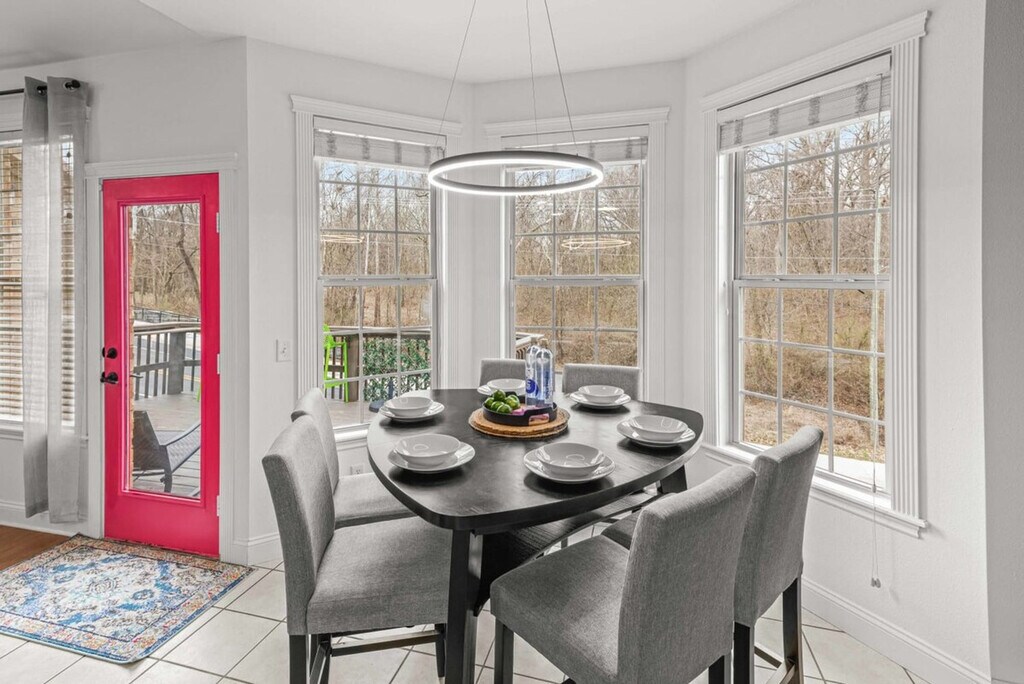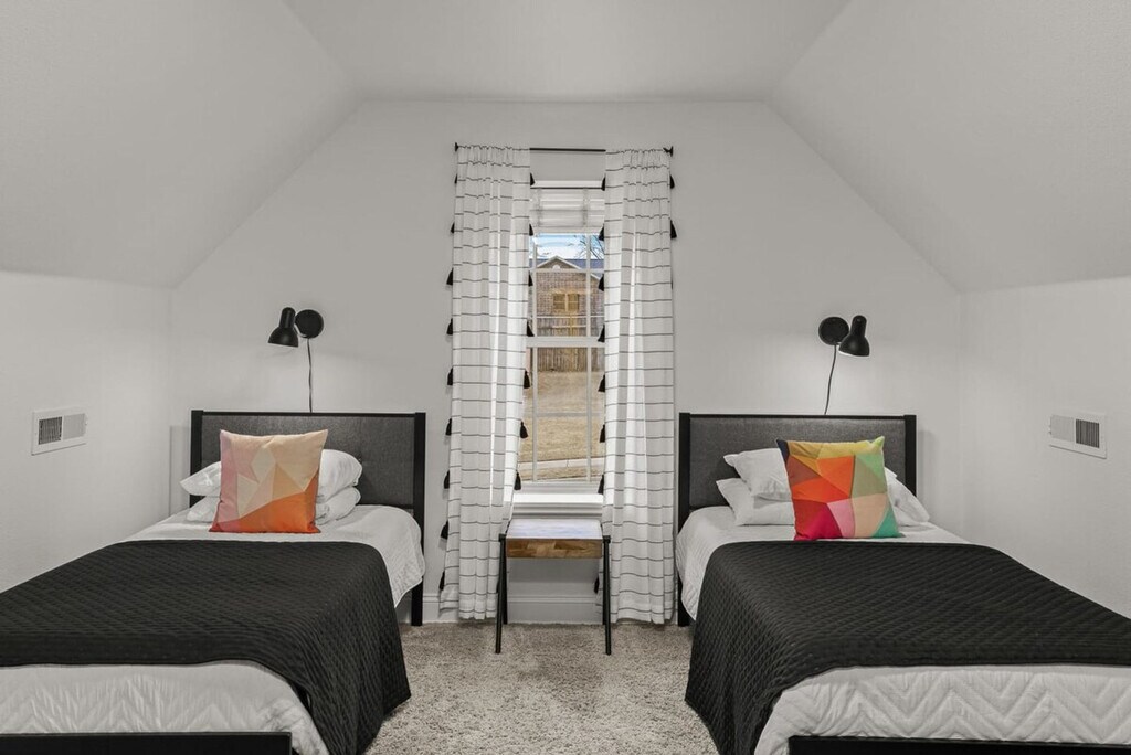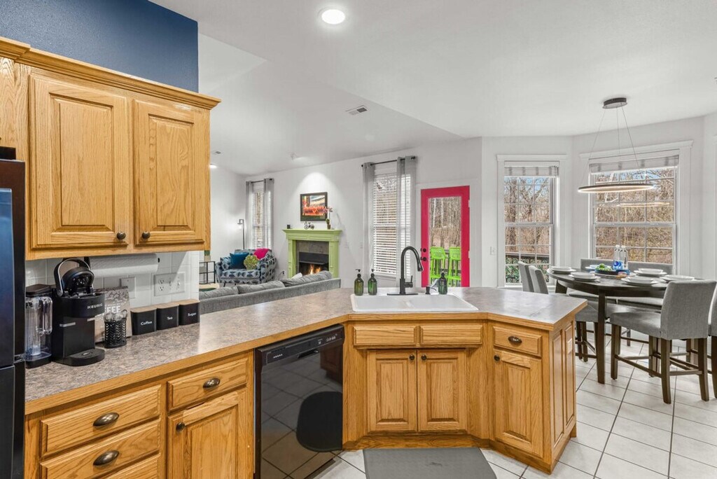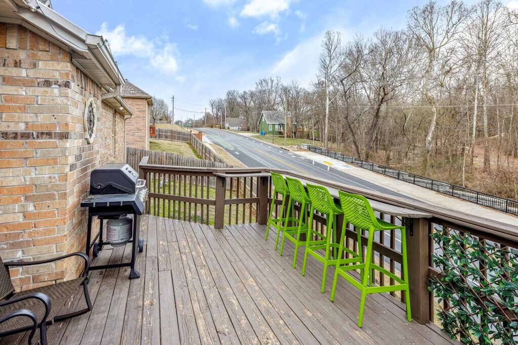 Experience Bentonville from this welcoming 4-bedroom, 3-bath home just steps from Coler Mountain Bike Preserve and minutes to downtown. Sleeping eight comfortably, it offers an open living space, a fully stocked kitchen, an attached garage for parking and secure bike storage, and a sunny deck and fenced yard perfect for pets. Ideal for families, cyclists, and remote work getaways, your adventure starts here! Welcome to your home away from home—an inviting open-concept living space with modern decor, a 65? smart TV, board games, and a cozy fireplace. The fully equipped kitchen features quality appliances, drip and Keurig coffee makers, and a large dining table. Retreat to four well-appointed bedrooms: a king master suite with en-suite bath, a queen bedroom, a twin bedroom, and a bunk room, each with comfortable linens. An attached garage provides parking and secure bike storage, plus a washer and dryer for convenience. Step outside to a sunny deck and fenced yard—perfect for relaxing and letting pets or kids play. Pets are welcome with a fee of $75 per pet per stay. The property offers free on-site parking. Just steps from Coler Mountain Bike Preserve and its coffee shop, this home is 1.5 miles from downtown Bentonville, Crystal Bridges Museum, and 8th Street Market. Walk or ride the trails, then enjoy local cafés and grocery options nearby. Nestled in a quiet, family-friendly neighborhood. Smoking is permitted outside only, and cigarette butts must be disposed of properly. Quiet hours are from 9 pm to 8 am, and there are no noise monitors. Check-in is after 4 pm and check-out is by 10 am. No parties or events are allowed, and unregistered guests are prohibited. The property is ideal for remote work getaways, offering a comfortable and inviting space for productivity. [SI]