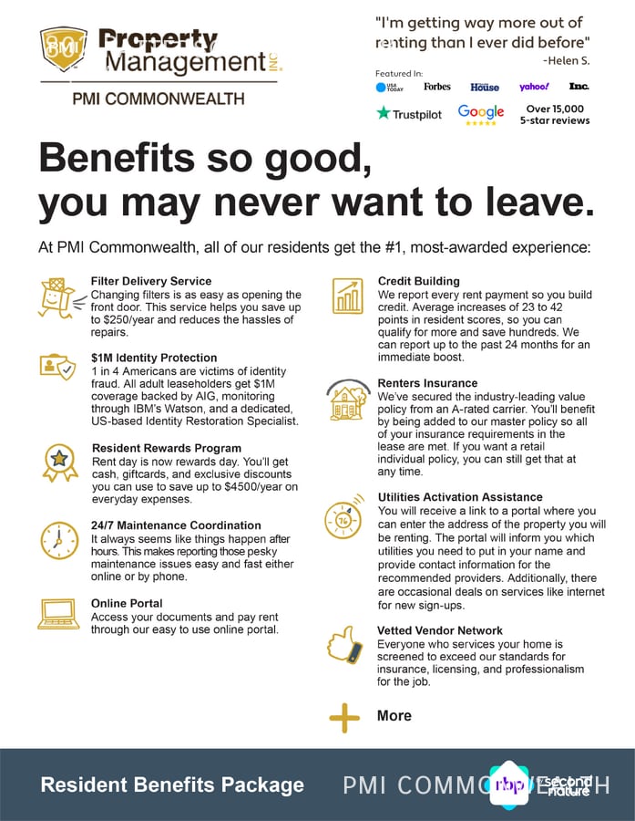 Offered by PMI Commonwealth. To view the most accurate information on the listing or to schedule a viewing online, please visit our website. A full list of properties available can also be found here. This posting is deemed reliable, but not guaranteed. Note about availability. The available date is the soonest a tenant could take possession of the property. Properties CANNOT be made available before their available date or more than 30 days after the available date. Qualifications: A 650 credit score and income 3x the monthly rent. Additional information can be found on our application. Security deposit is equal to one months rent. With pets we raise this to 1.5x the monthly rent. In cases where income or credit is below our requirements, 2x the monthly rent in security deposit may be required. Upon Acceptance: Lease must be signed within 48 hours. The deposit, and first months rent and dues with be due 48 hours from Lease signing. If lease begins after the first of the month, a prorated rent will be charged. Pet policy: With pets the security deposit is raised to 1.5x the monthly rent, and $25/mo will be charged in pet rent. The resident benefits package renters insurance includes dog bite coverage! Breed and size restrictions may apply per property. Additional Fees: Application Fee - $45 per adult (18 and over) All PMI Commonwealth residents are enrolled in the Resident Benefits Package (RBP) for $40.95/month which includes utility management, renters insurance ($10k of personal coverage as well as dog bite coverage), HVAC air filter delivery (for applicable properties), credit building to help boost your credit score with timely rent payments, $1M Identity Protection, move-in concierge service making utility connection and home service setup a breeze during your move-in, our best-in-class resident rewards program, and much more! More details upon application. You may provide your own policy for renters insurance should you have it. Application turnaround time: 2-3 business days depending on how quickly your references respond to our inquiries.