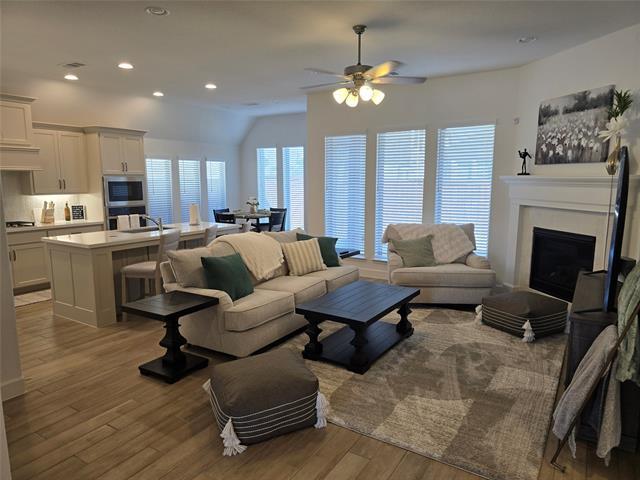 READY FOR IMMEDIATE MOVE-IN – FULLY FURNISHED! Beautifully furnished and completely turnkey, this spacious home offers comfort, style, and convenience. An extended entry with a stunning 12-foot coffered ceiling leads past the formal dining room into the open-concept family room, kitchen, and morning area—perfect for everyday living or entertaining. The family room features a wood mantel fireplace and a wall of windows that fills the space with natural light. The kitchen offers a generous island with built-in seating, ample cabinetry. Refrigerator, washer, and dryer are included. The private primary suite features double-door entry to the bath with dual vanities, garden tub, separate glass-enclosed shower, and a large walk-in closet. Secondary bedrooms include walk-in closets and are comfortably furnished. Enjoy outdoor living under the covered backyard patio. Two-car garage included. Ideal for corporate relocation, executive housing, or anyone seeking a seamless, move-in-ready living experience.