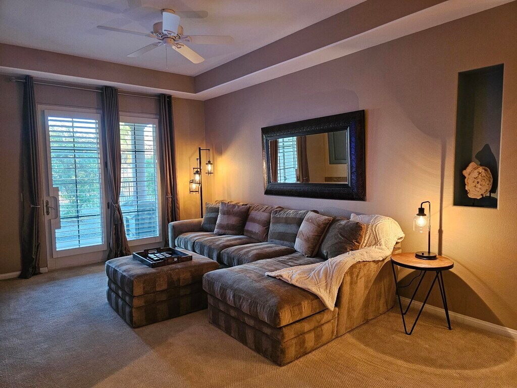 Available May - November 2026. Then March 2027 and beyond. Welcome to Villa Portofino; Palm Desert's premier 55 or better,active,adult community. This turnkey furnished 1559 square foot,two bedroom condo has a den,and two full bathrooms. There is a chef's kitchen with granite counter tops and stainless steel appliances,and a private patio with bar-b-que for outdoor entertaining. Villa Portofino is known for its spectacular,Mediterranean style,32,000 square foot clubhouse. Enjoy a complementary movie in the 100 seat theater. Have lunch in the bistro. Or better yet,have your lunch served poolside. There is fine dining if you like. Or you can watch the game and have refreshments in the billiard room. There is bridge,yoga,tai-chi,an art room,a music room,and a state of the art fitness center. There is just no shortage of things to do here. Villa Portofino is centrally located in close proximity to exquisite golf courses,fine dining,and excellent shopping. Minutes to El Paseo,Acrisure Arena,McCallum Theater,and multiple casinos,as well as tennis,hiking,and biking. Rates: January - April: $3900/Month May - October: $3000/Month November - December: $3500/Month Utilities capped at $100/Month (Tenant responsible for all gas & electricity over $100 per month.) Security Deposit: $2500 Cleaning Fee: $300 MLS # 219136800