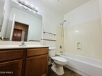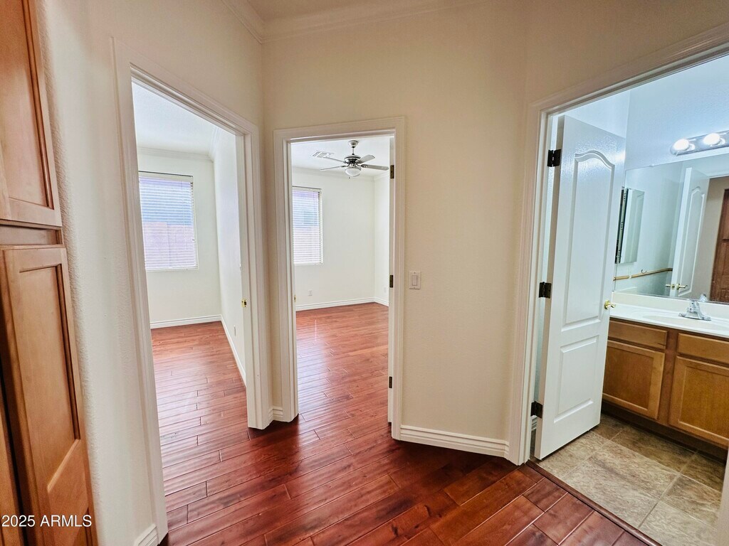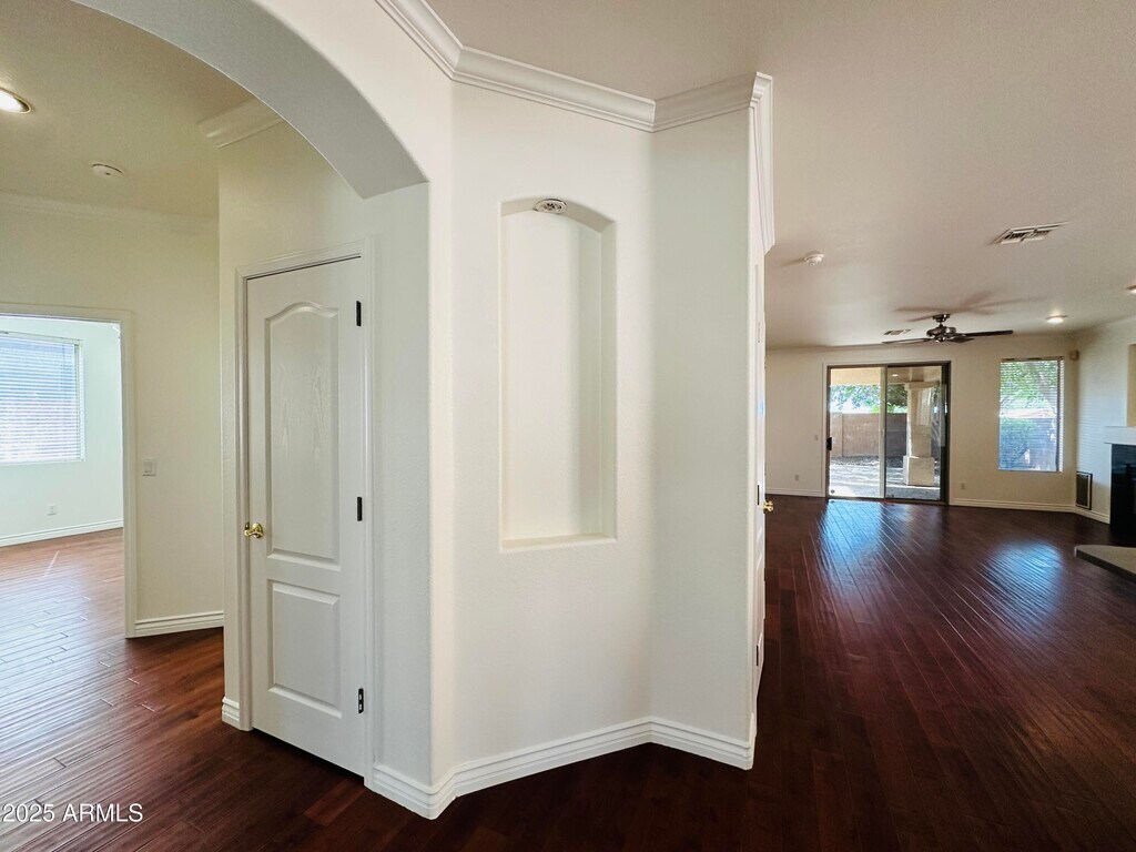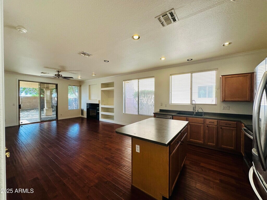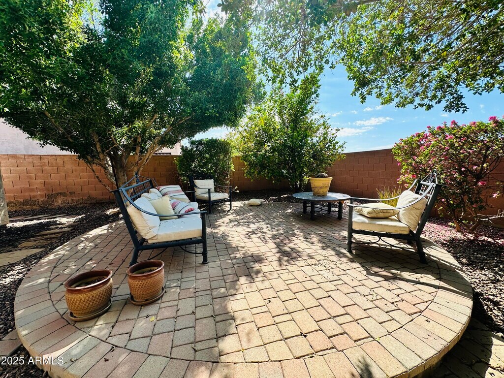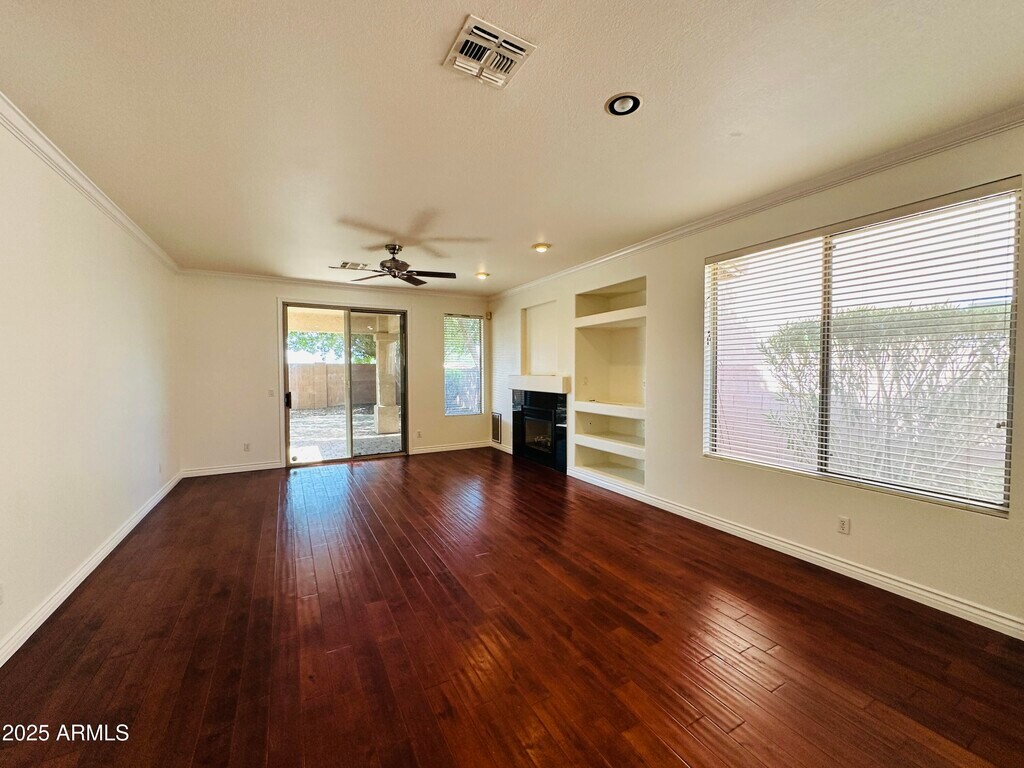 Single-level home in Foothills Club West offering 3 bedrooms,2 baths,and 1,470 sq ft. A split floor plan with wood flooring throughout creates easy flow and no carpet to maintain. The front living room provides space for entertaining,while the great room includes built-in shelving and a fireplace. The primary suite features a roman soaking tub,separate shower,and walk-in closet. Additional bedrooms include closet space and natural light. The backyard is designed for relaxing with a covered patio and mature landscaping. Refrigerator included. Washer and dryer not provided. Pet friendly. Conveniently located near hiking trails,golf,and shopping within 3 miles.