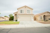 Gorgeous Surprise home with cathedral style vaulted ceilings. Open living room with separate dining area with views into spacious grass backyard. Laminate wood flooring in living room with tile in the kitchen. All kitchen appliances included with plenty of cabinet space and pantry. All bedrooms upstairs. Spacious master,walk-in closet and dual sinks in master bath. Home sits on a corner lot for extra privacy with only 2 direct neighbors! RV Gate and 2 car garage. Located within close proximity to various shopping,access to Grand Ave/US 60 and Loop 303.