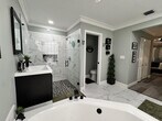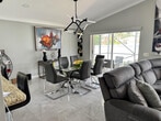 Completely remodeled 3-bedroom, 2-bath single-story home with a 2-car garage in the highly desirable gated community of Symphony Bay. This light and bright home features vaulted ceilings, a spacious open layout, and a split floor plan. Situated on a corner lot with a screened patio, lanai, and grassy yard--perfect for outdoor living. The updated kitchen boasts granite countertops, crisp white cabinets, tiled backsplash, and stainless-steel appliances. Recessed lighting throughout adds a modern touch. The luxurious primary suite includes tray ceilings, walk-in closet, dual sinks, soaking tub, and separate shower. Full accordion shutter storm protection. Enjoy resort-style amenities: pool, tennis, basketball, playground, gym, and clubhouse.
