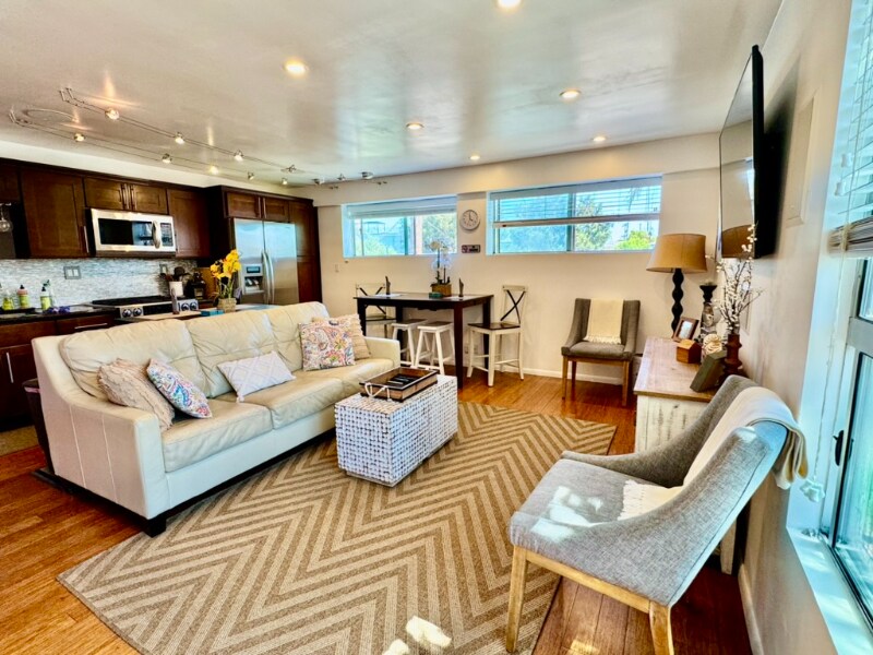 Property Id: 1184489 You'll love my fully furnished high-end unit because of the peaceful palm tree views, comfy queen beds, chef inspired kitchen, spa like bath, AC, washer/dryer, parking & more. It's a modern 2 bedroom, 1 bath 2nd floor oasis that's open & bright. There's also a tiny private outdoor patio area with 4 stools and BBQ (see photo) The unit comes with 1 private off street parking space & all utilities are included. It has 5 speaker surround sound, 60" HDTV, RokuTV, YouTubeTV, AppleTV, WiFi, A/C, Washer, Dryer, keyless entry & more. It's great for longer term business travelers, remote workers, etc. Location, location, location: a stone's throw from everything that makes Venice Beach famous. It's less than 3 blocks to the beach, shopping, restaurants, night life, Abbot Kinney, Venice Canals, Farmers Market & more. Priced for 6 months. Lease length is negotiable. Small well behaved pets considered w/ deposit. This is 1 unit in a small 3 unit building. Showings only possible as of Oct 1.