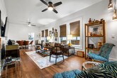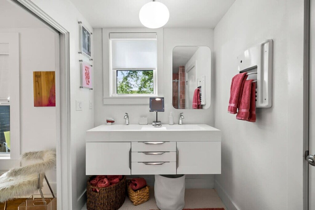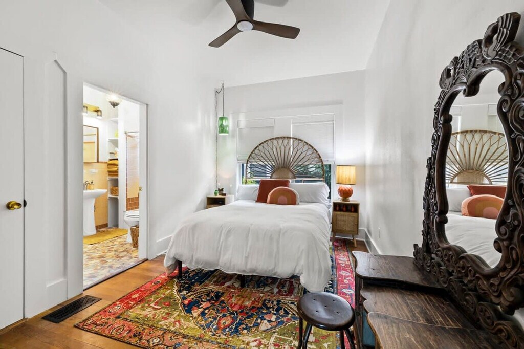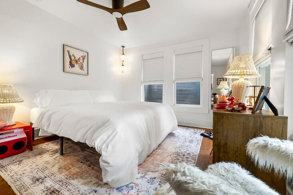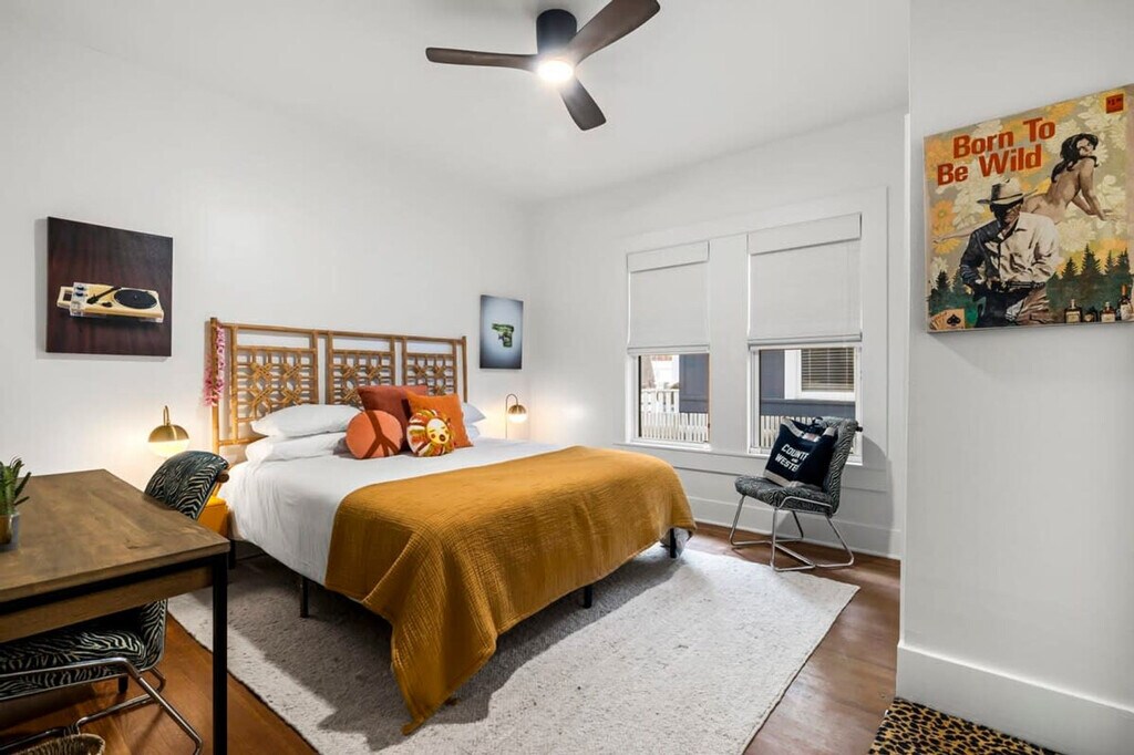Feel at home in this charming 3-bedroom home in South Austin, nestled just beyond the city's lively atmosphere and located two blocks from South Congress Ave. This home encapsulates the essence of Austin's unique charm and character. The living areas are spacious and inviting. The fully equipped kitchen features all the amenities needed to prepare delicious meals. Each well-appointed bedroom has been designed with your comfort in mind, boasting comfortable beds, room-darkening shades, and tasteful decor that reflects Austin's vibrant culture. Parking passes are provided and must be returned before checkout. A $250 fee will apply for unreturned/lost passes. Located less than two blocks away from the famous Congress Avenue, this home is appealingly situated to explore all that Austin has to offer. The location grants easy access to the city's renowned attractions, live music venues, eclectic dining scene, and outdoor adventures. Magnolia Cafe and Kendra Scott Flagship are a 2-minute walk, Perla's, Home Slice Pizza, and Jo's Coffee (the "I love you so much" sign) are a 10-minute walk, Cosmic Coffee + Beer Garden is 1.1 mile, Nomadic Beerworks is 1.8 mile, St Elmo Brewing Company is 2.4 miles, The Austin Winery is 2.6 miles, Zilker Park is 3 miles, Rainey Street District (Restaurants | Bars) is 2 miles, and H-E-B is 2 miles. Quiet hours are from 10 PM to 7 AM. Pets are not allowed, and a $500 fine will be charged if this rule is violated. Smoking and parties or events are not allowed. If any furniture is moved, please place it back in the original space where it was found. Additional charges (including shipping fees) may apply if personal items are left behind. There are animals raised by locals near the property, and should they cause any noise disturbance, please notify us promptly. In the event that you need to use the hard key, we kindly request that you place it back in the lockbox before departing; failure to return any keys used to the lockbox will result in a $50 replacement fee per key. Please do not set the home's thermostat above 76 (heating) or below 68 (cooling). To avoid overloading the system, please adjust the thermostat by no more than 2 degrees per hour and keep the doors and windows closed as much as possible. There are bugs, especially during cricket season, around September, and to help keep them outside, please keep all windows and doors closed, especially in the evenings.