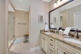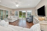 Don't miss this rare, unfurnished end-unit rental with a 2-car garage and stunning views of the lagoon with a tranquil fountain! Featuring a desirable master suite on the main level, the ensuite includes a large, tiled shower, dual vanities, and a spacious walk-in closet. The main living area boasts hardwood floors and an open-concept design with a granite and stainless-steel kitchen, pantry, breakfast bar, and a combined dining/living space. A laundry room and half bath complete the first floor for added convenience. Upstairs, you'll find two oversized bedrooms, a full bath, a dedicated media room, and plenty of storage. Enjoy peaceful lake views from the sunroom or relax on the back patio. Ideally situated next to the community pool with nearby overflow parking. The location offers easy access to a fishing dock, Gascoigne Park, and quick on/off island access.
