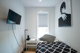 Feel at home in this newly renovated, fully furnished luxury 2-bedroom, 1-bathroom condo in the Dupont Circle neighborhood, located on the second floor. This apartment features a modern open floor plan, closets, marble countertops, stainless steel appliances, an in-unit washer and dryer, and hardwood floors throughout. A 50” Samsung Smart HDTV and premium Bosch brand appliances are included. Wi-Fi is included and the property includes central air and heat. Dupont Circle is a traffic circle, neighborhood, and historic district in Northwest Washington, D.C. The traffic circle is located at the intersection of Massachusetts Avenue NW, Connecticut Avenue NW, New Hampshire Avenue NW, P Street NW, and 19th Street NW. The Dupont Circle neighborhood is bounded approximately by 15th Street NW to the east, 22nd Street NW to the west, M Street NW to the south, and Florida Avenue NW to the north. A background check is required upon booking. [SI]