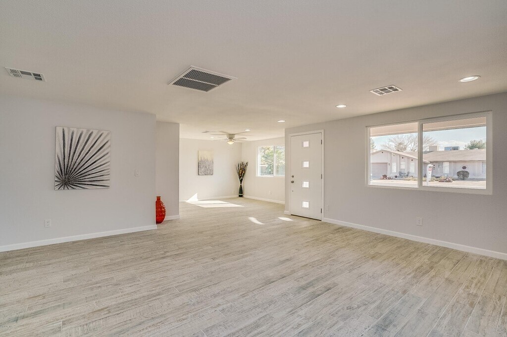Welcome to your next home! This beautifully updated, single-story residence boasts 1,422 sq ft of living space on a 6,098 sq ft lot. Key Features & Upgrades: - Fully renovated in 2021 with an open, modern floor plan - Brand-new tile flooring throughout - Gorgeous granite countertops in kitchen and baths - Stainless steel, energy-efficient appliances - Energy-efficient windows for comfort & insulation - Fresh paint inside and out - Smart home features: programmable thermostat, smart door locks - Updated bathrooms with new vanities, lighting, ceiling fans - 9+ ft ceilings for an airy feel - Eat-in kitchen with island, pantry, disposal - Inside laundry hookups (wash/dry can be included) - Attached garage (fits multiple vehicles) + extended driveway for additional parking - Fully fenced yard (block fencing) with RV Gate - Desert front landscaping, grass in back Layout & Property Details: - 4 bedrooms, 2 full bathrooms Zillow - One-level ranch style with direct access to all rooms - Open great room concept connecting living, dining, and kitchen - Master bedroom includes 3/4 bath and walk-in closet Zillow - Cooling: refrigeration; Heating: forced air (electric) Zillow - Utilities via SRP, public sewer, city water Zillow Location & Community Highlights: - Centrally located in Chandler with quick access to Loop 101, Loop 202, and US-60, making commuting across the Valley seamless - Minutes from downtown Chandler’s dining, shopping, and entertainment scene - Close to Chandler Fashion Center, major employers, and tech hubs - Nearby parks, golf courses, and recreational areas - Easy access to top-rated schools, healthcare, and community amenities