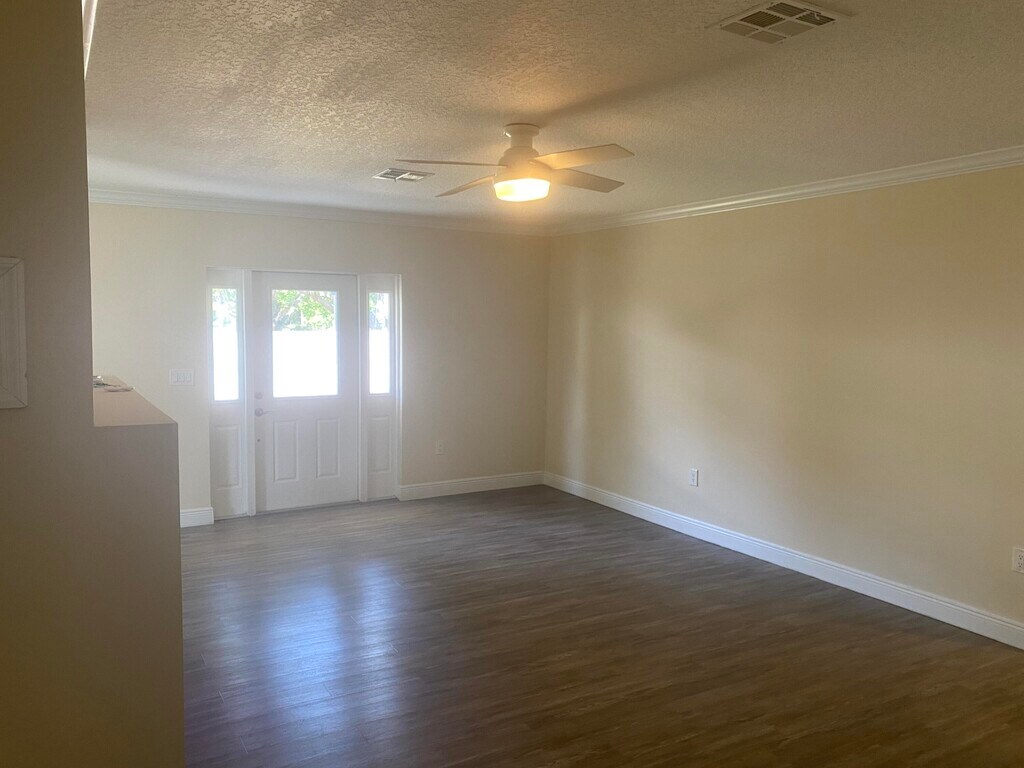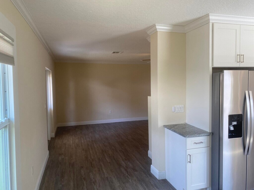 Beautifully Renovated home on large fenced lot. Centrally located in the city of Vero Beach home has 3 Bedrooms, 2 Baths, metal roof, impact windows, Stainless Steel Appliances, laundry room, large storage shed, spacious eat-in Kitchen, all New Vinyl floors, walk-in closets, Electric Fire Place and large patio. Bring your large Pets. Available Dec. 1st. Landscaping included in rent.