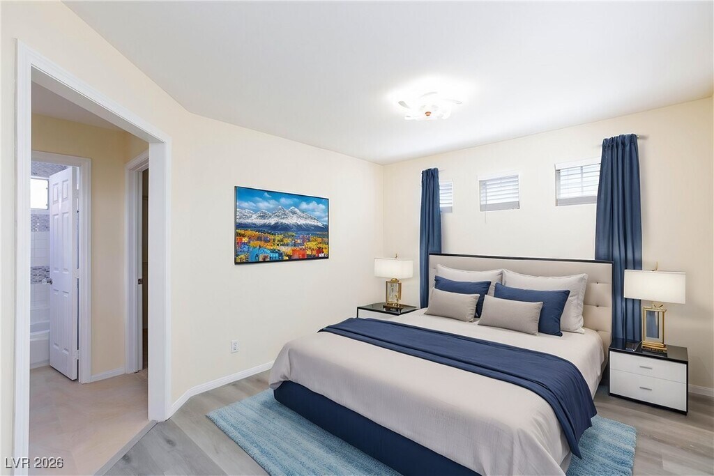 This stunning home in the exclusive Peccole Ranch neighborhood boasts over $75K in upgrades, featuring designer touches throughout. The property includes a beautifully remodeled kitchen with leather-textured black granite countertops and backsplash, stainless steel appliances, as well as elegantly renovated bathrooms with exquisite tile, white Quartz countertops, rainfall showerheads, and smart toilet. A separate built-in office, wood paneling, crystal lighting, and modern fans add to the home's unique and distinctive grandeur. The interior showcases white and pink marble feature walls, a grand crystal chandelier, and new laminate flooring. The maintenance-free backyard with decorative rocks and multiple walk-in closets, and dual primary bedrooms enhance the modern, trendy appeal of this exceptional residence. Welcome to your new home!