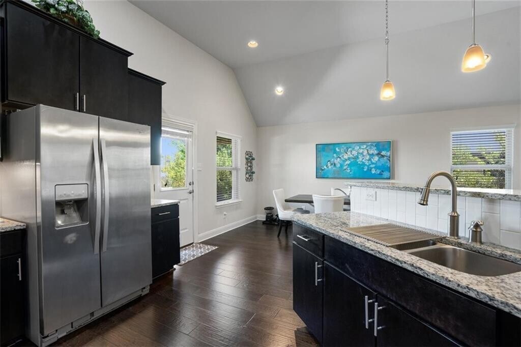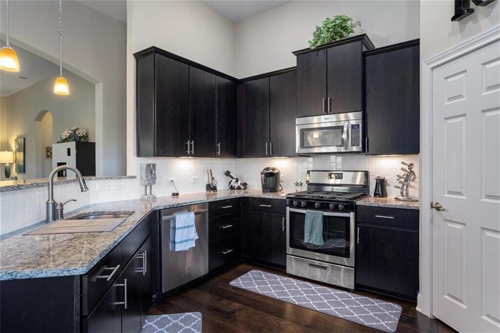 Welcome to this wonderful home, where you'll find an inviting charm and lovely landscaping that make you feel right at home! As you step inside, you'll appreciate the warm hardwood flooring throughout the entry, family room, and the open-concept kitchen and dining area – perfect for creating lasting memories with your loved ones. The primary bedroom offers a peaceful retreat with its hardwood floors, double sinks, a spacious walk-in shower, and a huge walk-in closet to accommodate all your belongings. The secondary bedrooms provide a cozy and relaxing space with their comfortable carpeting. The kitchen is sure to impress, featuring stylish dark cabinetry, beautiful light granite countertops, and a classic white subway tile backsplash. The breakfast bar, with its pendant lighting, adds a modern touch, while the stainless steel appliances make cooking a breeze. Step outside to the backyard, where you'll find a delightful deck, a covered porch, and an extended patio – a perfect spot to unwind and enjoy the serene views. This fantastic home is conveniently located in the vibrant area of South Austin, offering easy access to nearby amenities and attractions, as well as the charming town of Buda just a short drive away. Come and experience the comfort and beauty of this home – it's ready to welcome you with open arms! Please note that there is no hot tub to convey.