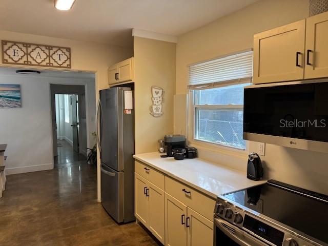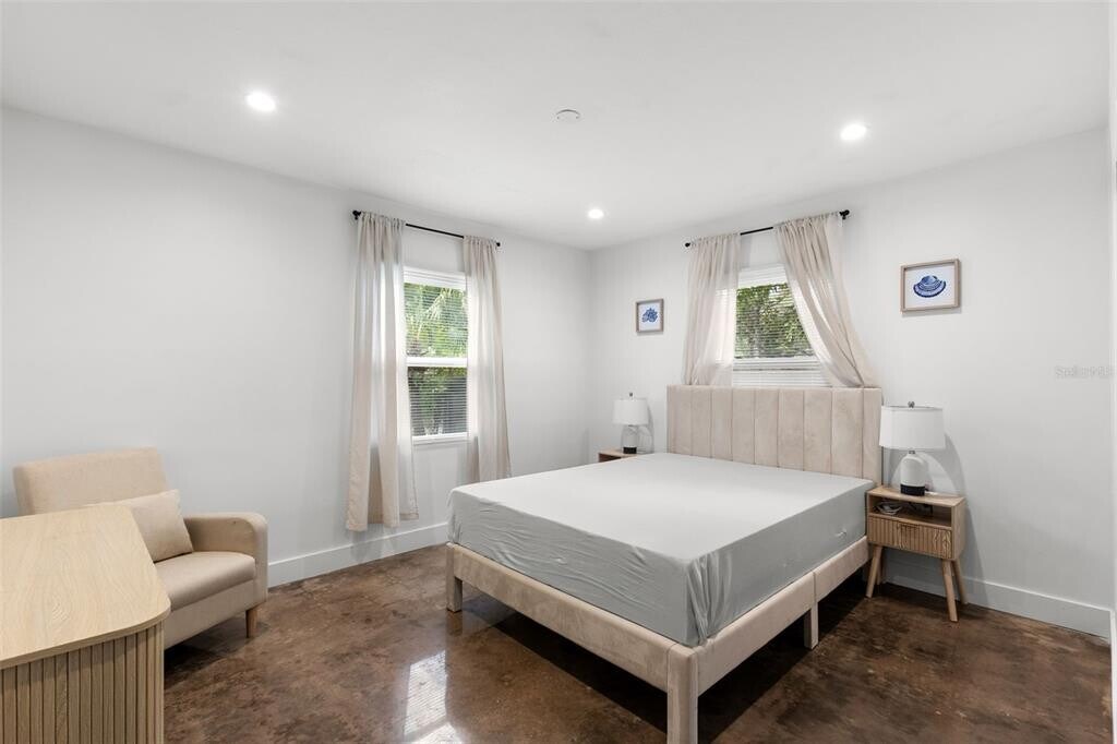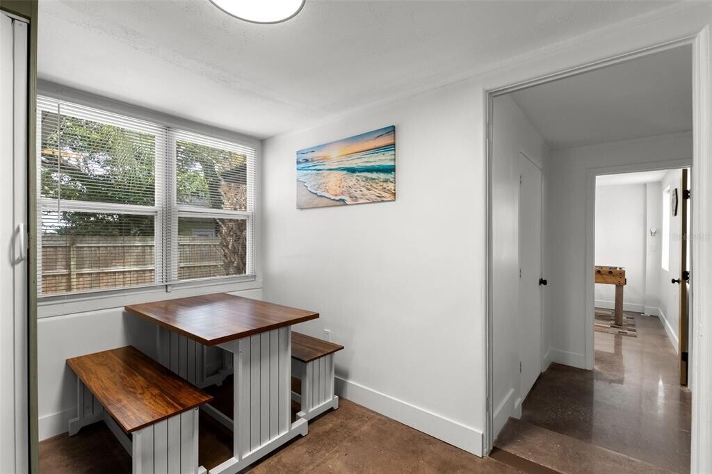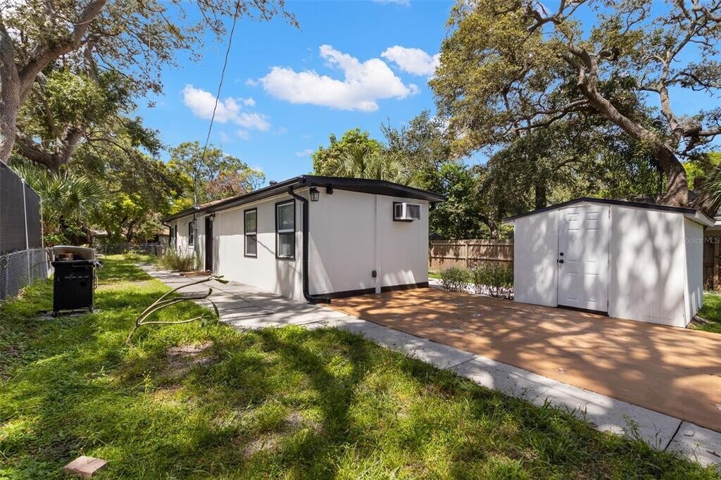 Welcome to this charming,updated home completely move in ready! Step into a bright and inviting living room,where natural light pours in through the windows,creating a warm and welcoming atmosphere. The dining area is perfect for enjoying cozy family meals and flows seamlessly into the updated kitchen,which boasts granite countertops,shaker style cabinets and all new stainless steel appliances! The primary and second bedrooms are generously sized with closets; the third room includes built-in shelving and is ideal for a home office,creative space or can be used as a 3rd bedroom. Enjoy the convenience of the laundry closet with a stackable washer and dryer. Outside,a spacious backyard features a storage shed and plenty of room to soak up the Florida sunshine. Throughout the home,polished concrete floors offer a sleek look and make cleaning a breeze! Located close to beaches,ballpark,shopping and more,this home offers comfort and convenience! Rent includes: Trash,frontier WiFi free for 2 months - HVAC is new and has great insulation for lower electric bills! Other notable features: new plumbing,new hot water heater,insulated attic,access to the security cameras,and beautiful polished concrete floors - you will love this place! MLS# TB8426428