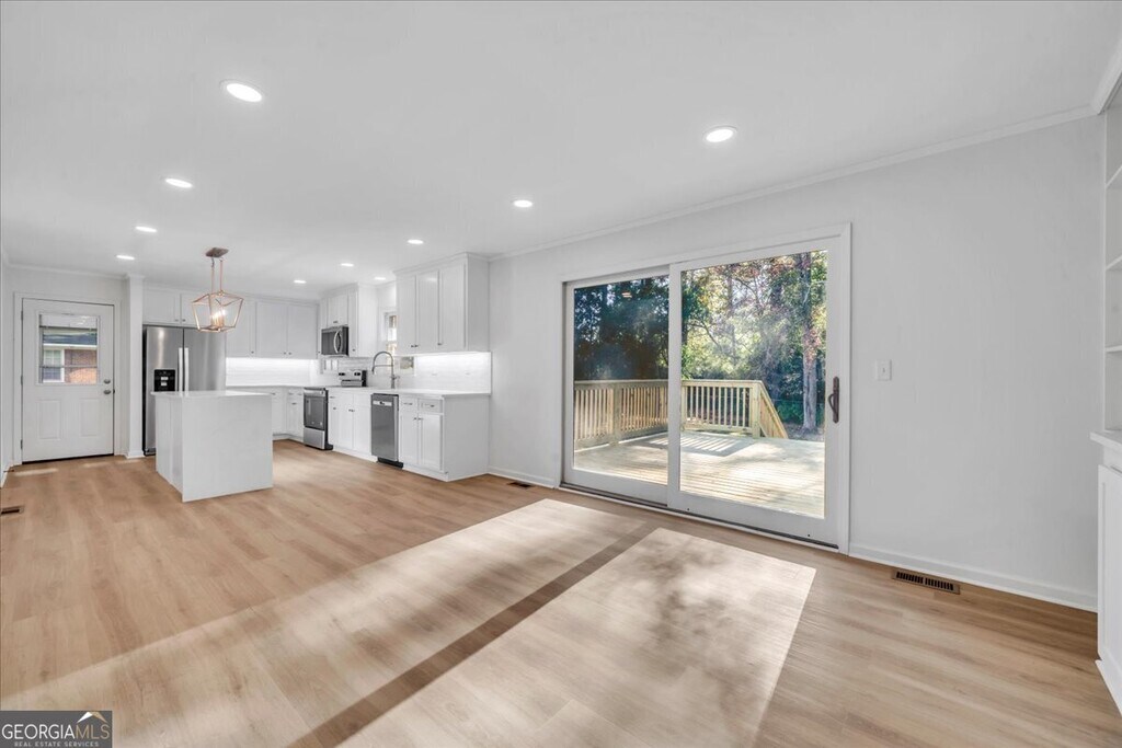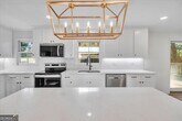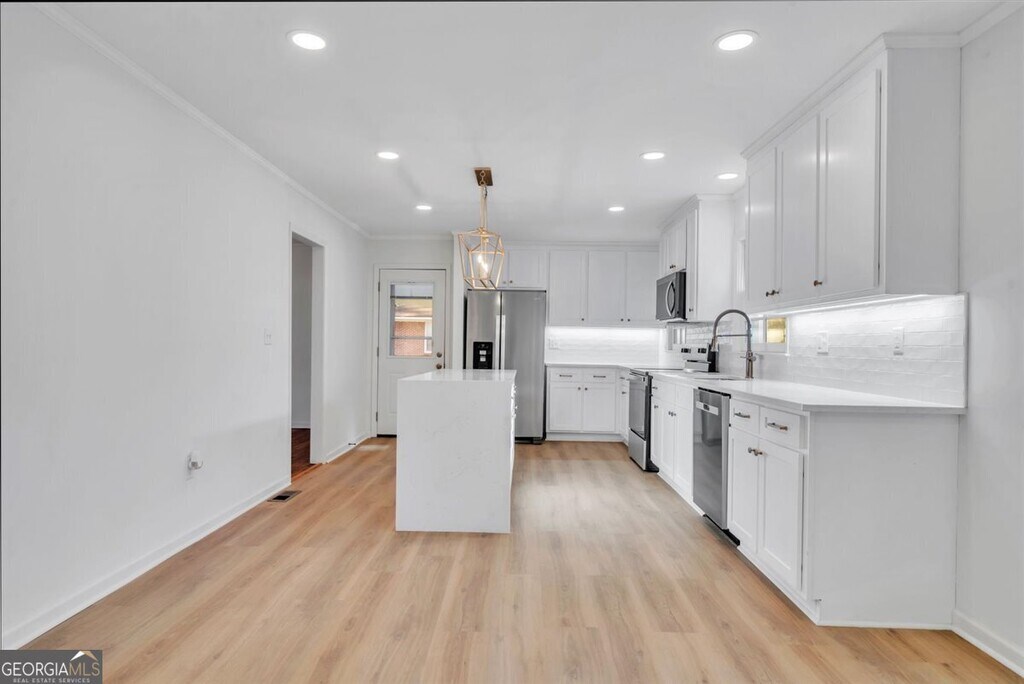 Welcome home! This beautifully renovated 3-bedroom, 2-bath ranch blends modern upgrades with timeless charm. Step inside to discover refinished hardwood floors, a bright open layout, and a brand-new kitchen completely redone from top to bottom-featuring new appliances, sleek quartz countertops with waterfall island, fresh cabinetry, and stylish fixtures throughout. Every light fixture and plumbing fixture in the home is brand new, adding a clean and contemporary feel to every space. Both bathrooms have been fully updated, and the entire home has been freshly painted inside and out for a crisp, move-in-ready finish. The main living area flows seamlessly to the outdoors through a new French sliding door that opens onto an oversized back deck-perfect for grilling, entertaining, or simply relaxing. Outside, enjoy new landscaping, a massive fully fenced backyard, and excellent storage options including a two-car carport, a dedicated storage shed, and additional covered carport storage. With thoughtful upgrades, quality finishes, and a spacious outdoor retreat, this home offers an elevated and truly turn-key living experience.