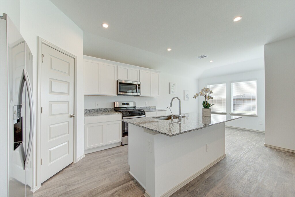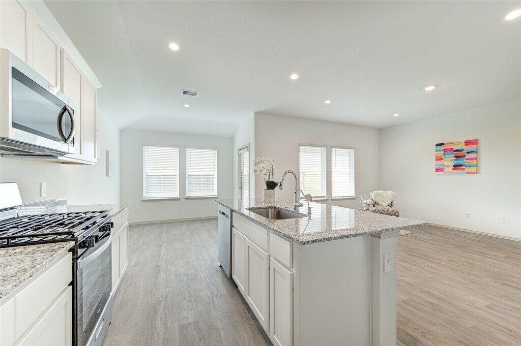 Beautiful one story home. Extended Foyer w/Beautiful Vinyl Floors lead the pathway into your amazing Family Room w/direct access to your Covered Patio & Large Backyard! Gourmet Kitchen w/granite Counters,Eat-in & Working Island,Stainless Sink,Drinking Water Filtration System,Stainless Steel Appliances,Tall Cabinets & Large Pantry flows gracefully into your Casual Dining area & Family Rm! Master with Bathroom made for Two w/His & Her Private Sink Vanity,Huge Glass Shower & Walk-in Closet! Zoned to Outstanding Schools! Standard Energy Features: Tank-less Gas Water Heater. Brand new refrigerator,washer & dryer are included! Recreation Center w/Pool,Pavilion & Playground! MLS# 28474175