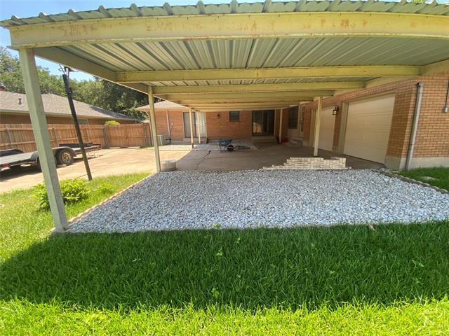 Quiet neighborhood with matured trees, 3 bedrooms plus 1 bonus room and 2 full baths, amazingly beautiful back yard with 2 car garage, 2 car port and drive into a paved and gated backyard. A lot of space i.e. gated and you can built & store all your equipment and tools. You will still have plenty of grass in the backyard.
