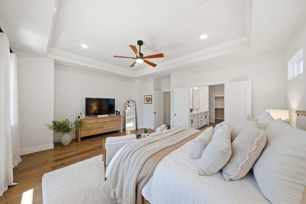 A rare 2 story home with first floor living in the vibrant First Ward/Arts district. Minutes from 100s of art studios,several breweries (Holler,Platapus & Tejas),Momentum Rock Gym,Maven and Brock Park in the next block. Plus it's a quick trip to downtown or the sports arenas. Open floor plan with wood floors throughout and modern white walls. Kitchen includes a 36in Fisher & Paykel range,Stainless refrigerator,wine/beverage fridge,a coffee bar,walk-in pantry and an island with space for bar stools. Outdoor space includes a 25 x 12 ft turfed backyard,covered patio and a balcony on the second floor with downtown views. All bedrooms upstairs including a huge primary bedroom with tray ceiling,and a primary bath to die for. Two secondary bedrooms connect to a spacious bathroom at the other end of the hallway. Wide street offers easy parking for guests. MLS# 34168246