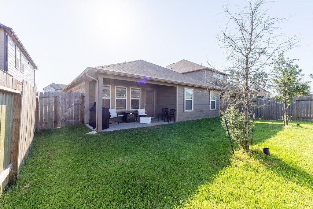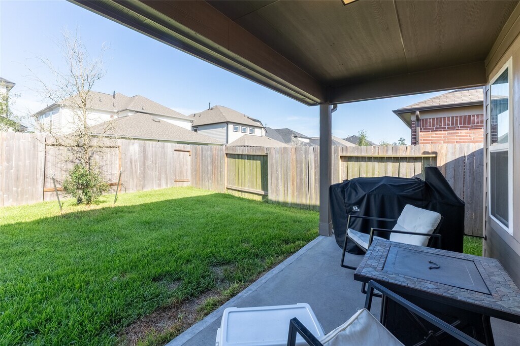 Charming single-story home in Barton Creek Ranch with top-notch CISD schools nearby. All-tile floors except bedrooms,stainless steel appliances,gas cooktop,and modern lighting create a bright,under cabinet lighting,primary bathroom has double shower heads in shower,open atmosphere. Flex space at the front offers versatility as an office,extra bedroom,or gym. Gas line in patio ready for your outdoor kitchen or BBQ . Additional features include full gutters,42-inch kitchen cabinets,granite countertops,and a covered patio. Faux wood blinds,3-sided brick exterior,and convenient location near I-45,Woodlands Mall,Market Street,and Cynthia Woods Mitchell Pavilion. Don't miss out on this lovely property! MLS# 82301242