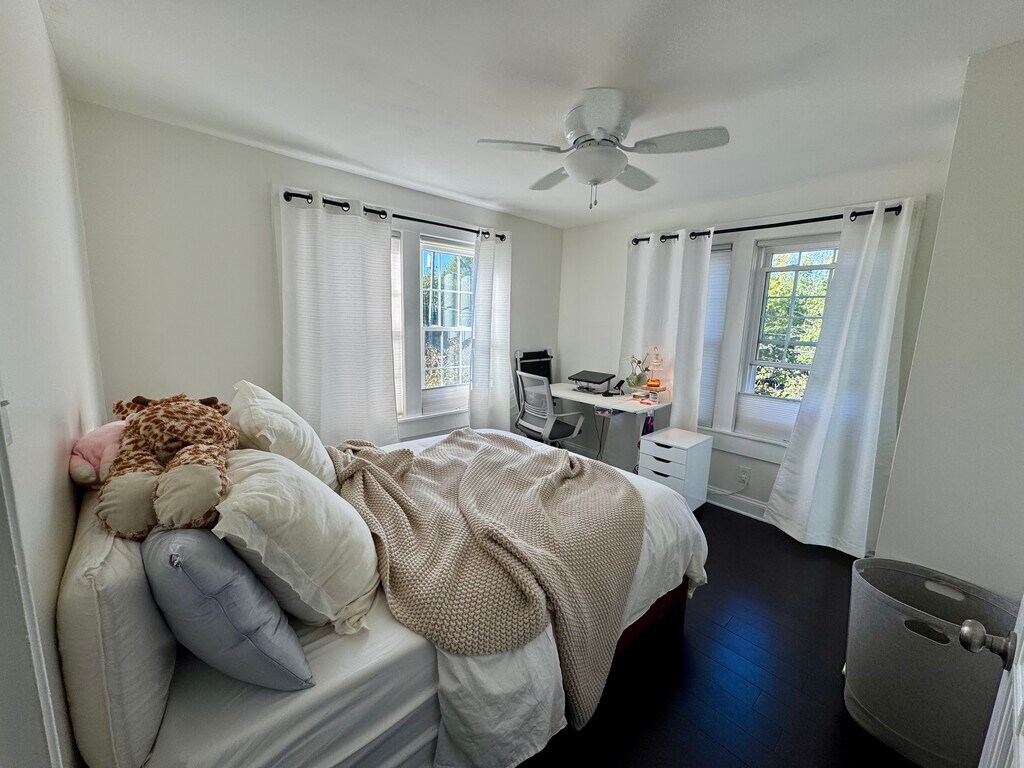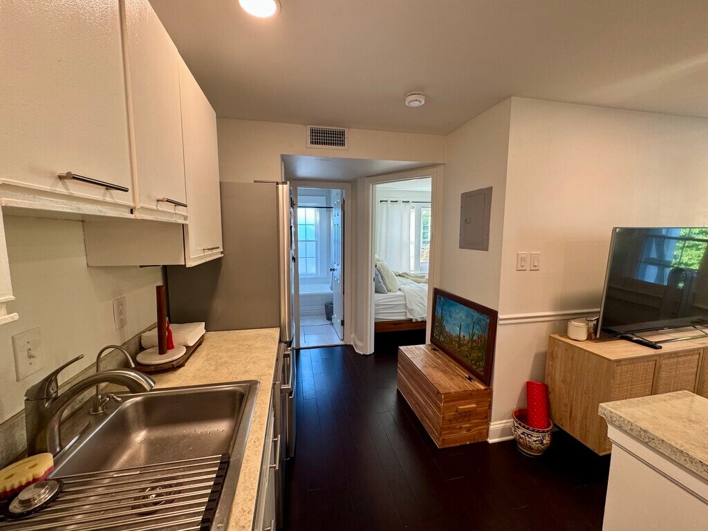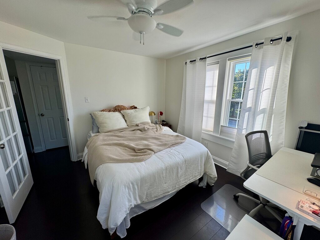 This beautifully updated one-bedroom, one-bath condo on the second floor offers modern comfort and convenience in the sought-after Del Ray neighborhood of Alexandria. The light-filled unit features an open layout with dark hardwood floors, crisp white walls, and large windows that create a bright and airy atmosphere. The recently renovated bathroom includes a stylish vanity with extra storage space, new fixtures, and modern lighting. Enjoy smart living with a smart thermostat and keyless smart lock, allowing for easy temperature control and secure, key-free entry. The spacious bedroom offers a serene retreat with double windows and room for a desk. The kitchen is well-equipped with stainless steel fridge and dishwasher (countertop microwave will be provided if needed), plenty of cabinet storage, and a breakfast bar that opens to the living area, perfect for entertaining or working from home. Located just minutes from the Metro and Del Ray's popular shops, restaurants, and parks, this condo combines comfort, style, and convenience in one of Alexandria's most vibrant communities. - Pets: One small pet considered with an additional deposit and monthly pet fee. - Parking: One assigned parking spot included. - Laundry: Free shared laundry located in the building's basement (one washer and one dryer shared among eight condo owners). The system is reliable, and I've had no issues. - Smoking: No smoking allowed inside the unit or anywhere within the condo complex. - Renter's Insurance: Personal property and liability renter's insurance required prior to move-in. - Tenant Screening: Income verification, credit, and background check required prior to signing the lease.