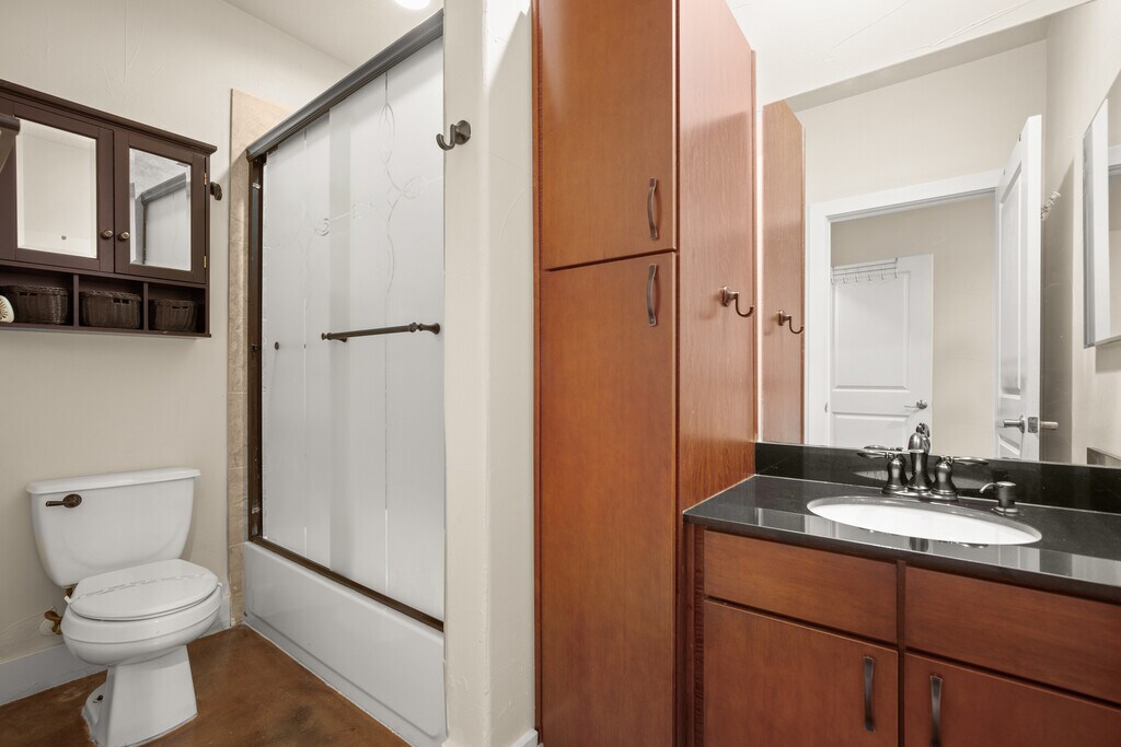 This 2 bedroom condo with 2 full bathrooms in East Austin offers a super convenient location and a great open, light and airy functional floor plan with bedrooms on opposite sides. Pet-friendly concrete floors, granite countertops, and stainless steel appliances. Sip lattes while you work at Bennu Coffee 24/7 which is just steps away or take friends across the street to the Austin Iconic Mural .. You're My Butter Half. Just minutes to The University of Texas and Downtown and just a 10-15 minute car ride to the Austin-Bergstrom International Airport! New water heater recently installed in 2025 and new stainless steel full size Washer &; Dryer inside the Unit! Rent also covers your water, sewer, trash, recycling, and parking pass (with gated FOB access)! Schedule for a private showing today!