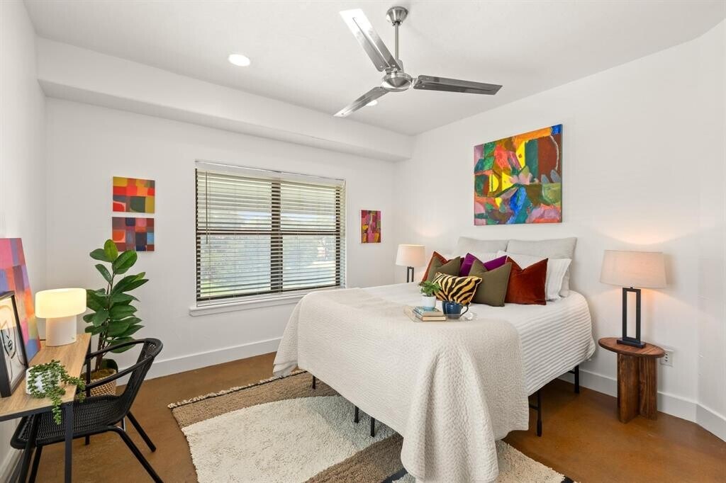 CORNER UNIT, BALCONY SPACE, MINIMUM SHARED WALLS, CONCRETE FLOORS. Ideally located above Bennu Coffee, across the street Casa De Luz, minutes from downtown Austin and the University of Texas campus. In this condo you will experience the benefit of a corner unit, with minimal shared walls, private-facing windows, and your own balcony area. The open-concept layout creates a spacious and welcoming environment, perfect for everyday living or entertaining. This condo is move in ready, the interior has been freshly painted and the HVAC system was replaced last year. The washer, dryer and refrigerator all convey. * All of the art inside the condo is for sale, please contact listing agent for more details*