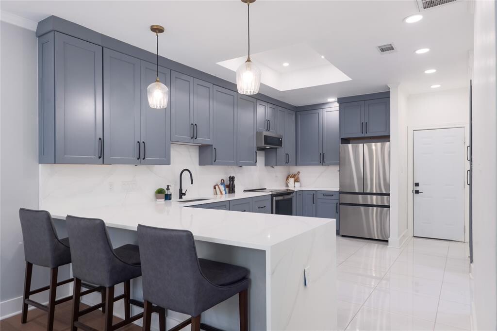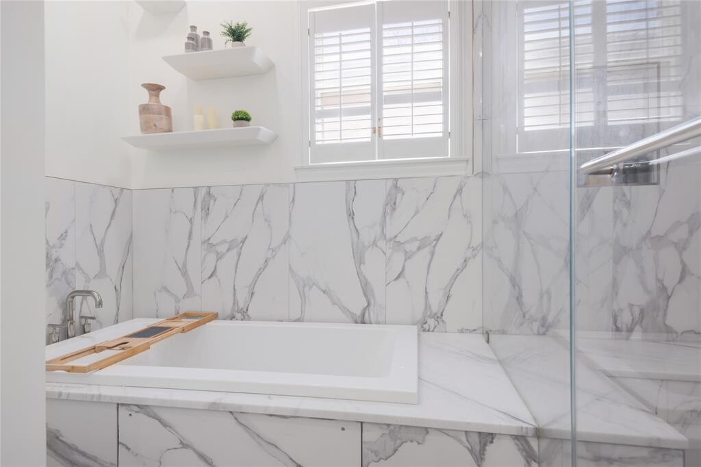 Ideally positioned in the heart of Austin, 1807 San Gabriel St #2B blends sophisticated design with effortless urban living, offering a rare combination of privacy, walkability, and modern comfort. The main level features a fully renovated kitchen anchored by a quartz waterfall island, sleek custom cabinetry, stainless steel appliances, and a built-in wine fridge designed for effortless entertaining. New wide-plank wood floors flow throughout the living space, complemented by a cozy fireplace that adds warmth and character. Recently installed windows and sliding glass door enhance natural light and energy efficiency, while providing seamless access to the private patio for effortless indoor-outdoor living. Upstairs, a dedicated home office provides ideal flexibility for remote work or creative space. Two generously sized bedrooms each offer walk-in closets and private en-suite baths. The primary suite serves as a true retreat, complete with custom California Closets built-ins and a spa-inspired bath featuring a dual marble vanity, steam shower, and jetted soaking tub. With direct access to Shoal Creek Trail and Pease Park’s hike-and-bike paths, plus easy connectivity to the Lady Bird Lake trail system, this location places the best of Austin just outside your door — from renowned restaurants and boutiques to downtown conveniences. MLS ID 3653344
