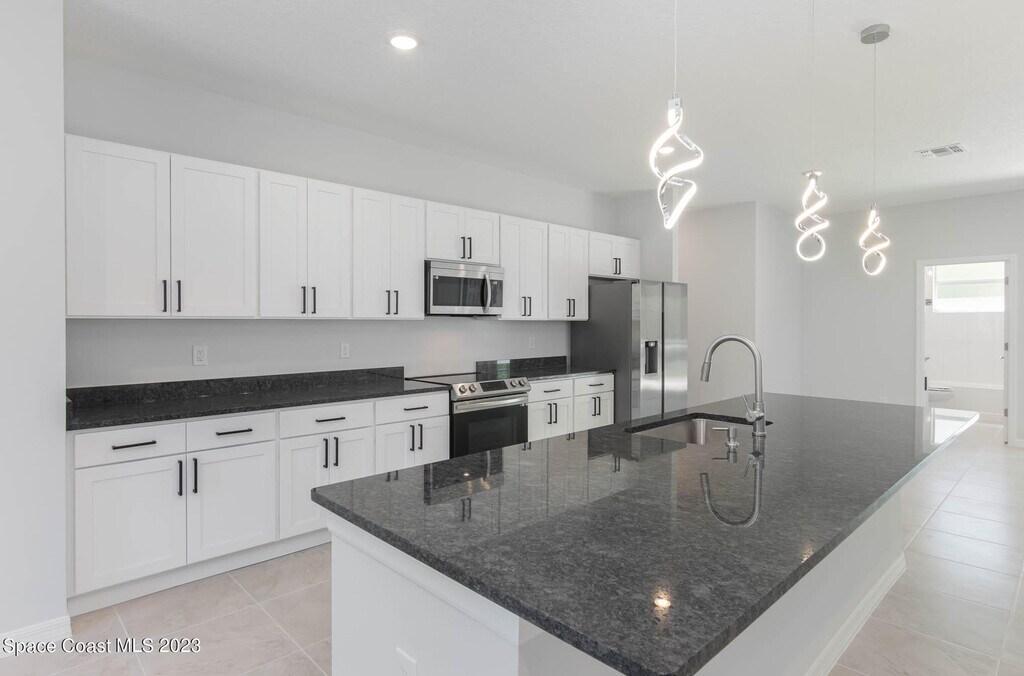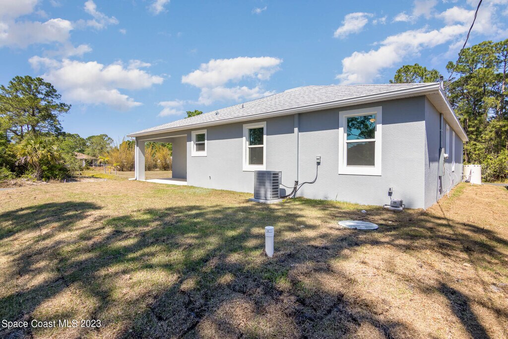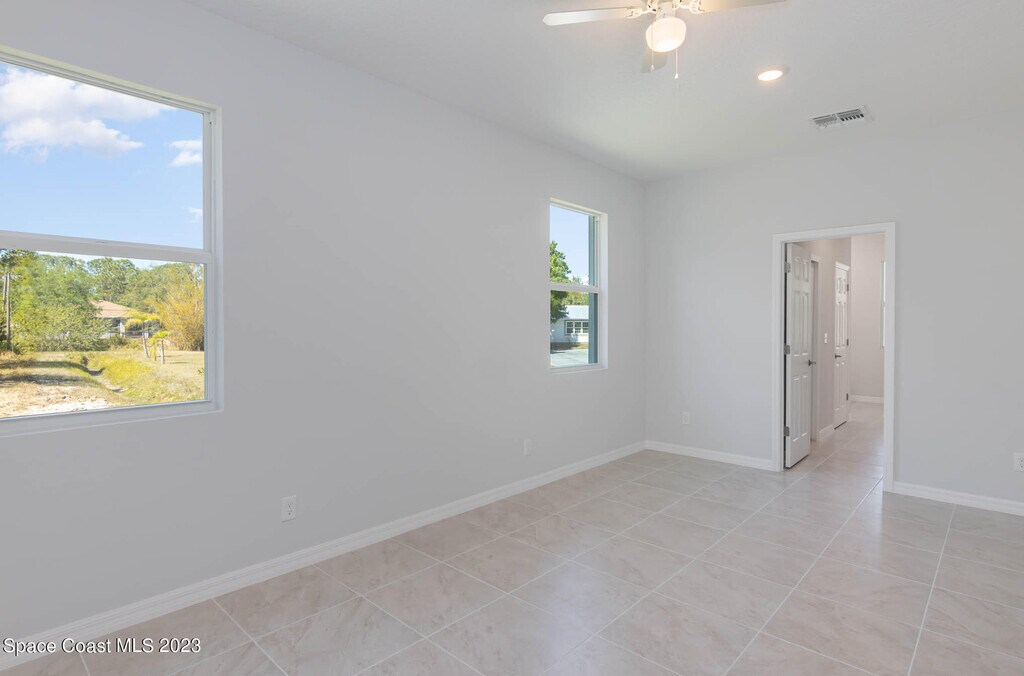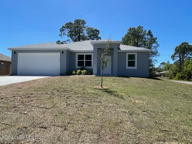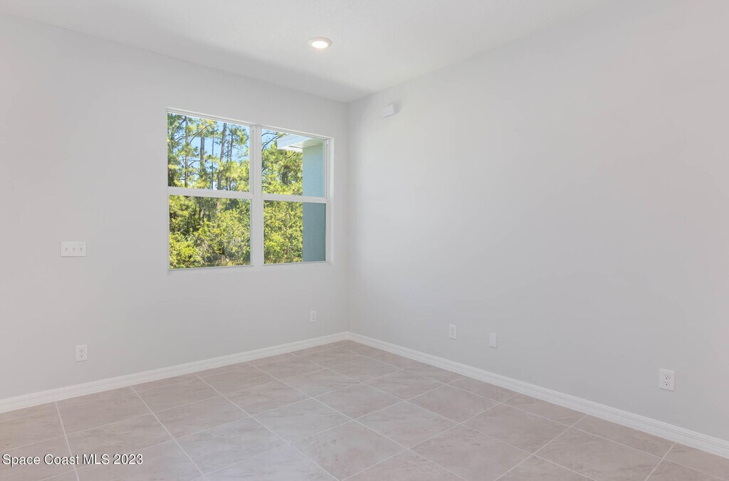 Newer Construction 4 bedroom,3 full bath,2 car garage home on a corner lot near Bayside Lakes built in 2023. Numerous upgrades including all hurricane windows & doors. High quality tile floors throughout home (no carpet). Open 10 foot island kitchen w/ white shaker cabinets,soft close drawers,Energy Star stainless appliances,& beautiful granite countertops. Nice tile work & granite in all 3 baths. Great room floor plan. Master features his & her walk-in closets,double sinks,bath tub & separate shower. 8ft overhead garage door. Indoor Laundry. Trussed porch overlooking private back yard. No HOA! MLS # 1070614