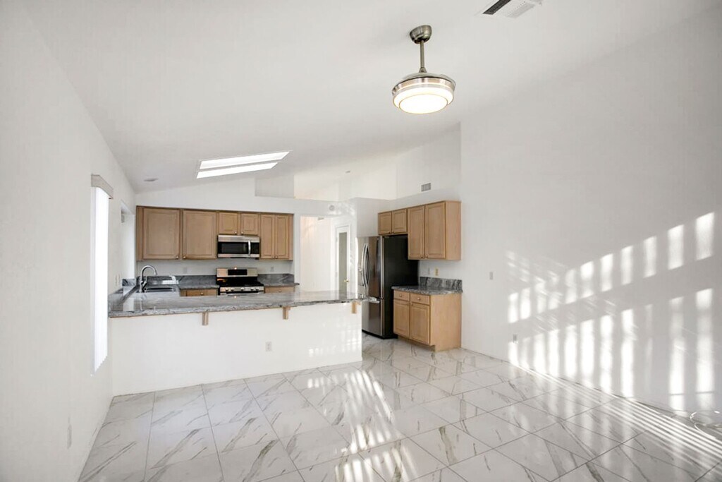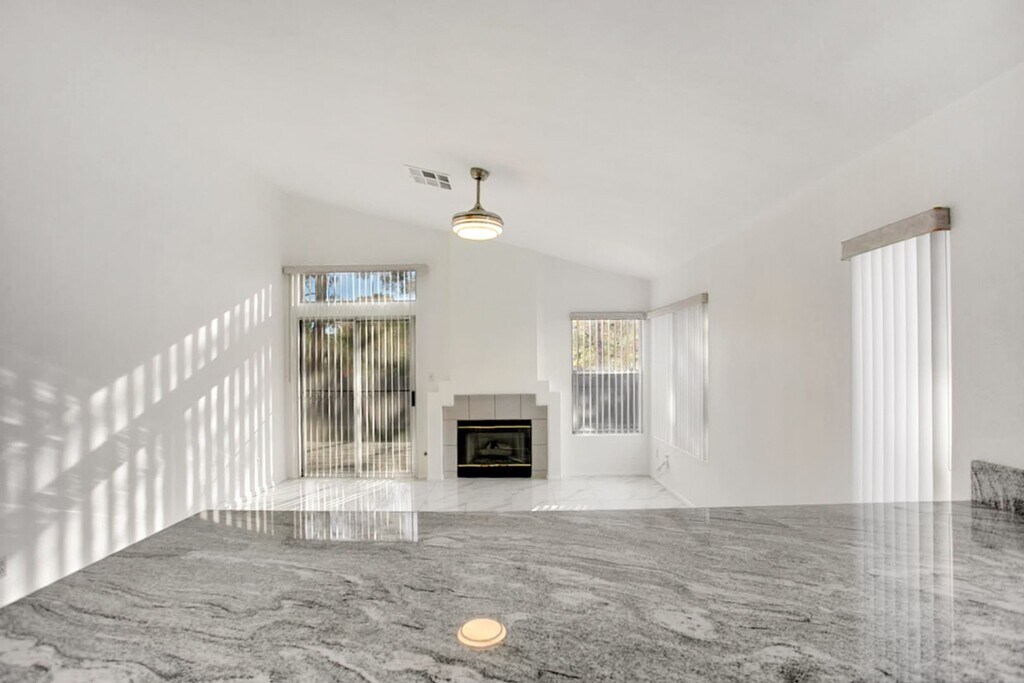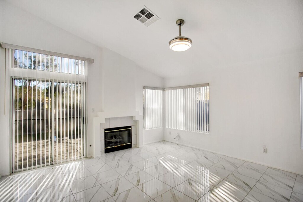 Beautiful, well kept, single story house in the sought after Peccole Ranch community; This home features high polished tile throughout the living area with luxuries MM laminate wood flooring in the bedrooms; Bright open floor plan with vaulted ceiling living and dining room; The kitchen features Granite countertops, breakfast bar, pantry, with stainless appliances including microwave and refrigerator; Separate family room with cozy gas fireplace and ceiling light; Laundry room with washer, dryer and cabinets; Both guest bedrooms feature mirrored door closets; Primary suite with vaulted ceiling, mirrored door walk in closet, cable outlet, double sink, deep soaking tub and separate walk in shower; 3 car garage with entry to house, storage shelves, door to backyard & water softener loop; Yard w/ paver patio & synthetic grass; Large community park & walking trails; Convenient to Downtown Summerlin, shopping, dining & more! Total rent: $2395 (rent $2300 + RBP $45 + $30 Sewer + $20 Trash)