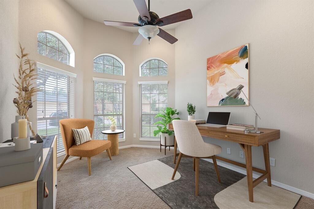 • Refrigerator + Washer/Dryer included • 2,800 sq ft - One-story layout • 4 bedrooms + dedicated office + 2.5-car garage • Formal dining room + open-concept living • Kitchen with: Granite countertops + Center island +Stainless steel appliances + Walk-in pantry • Tile flooring in main living areas • Private primary suite with Bay windows + Walk-in closet + Dual vanity + Separate shower and soaking tub • Covered back patio & fully fenced yard Community & Location: • Crystal Falls amenity center: pools + tennis courts + playgrounds • Minutes to HEB, 183A, and Leander Metro Rail Lease Criteria: • Minimum credit score: 625 • Tenant responsible for lawn care ($100/month) • 1 dog max under 40 lbs (breed restrictions apply)