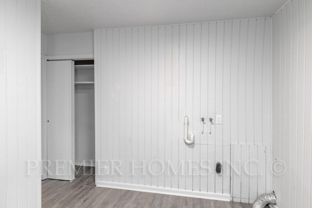 Welcome to your newly updated home! This bright and cozy 3-bedroom, 1-bathroom house features a modern interior with fresh finishes, a spacious fenced yard, and a large detached two-car garage. Key Features: Inviting Front Porch: Covered patio area perfect for relaxing outdoors or enjoying your morning coffee. Open Living Space: Freshly painted walls, wood-style flooring, and plenty of natural light throughout. Updated Kitchen Area: Ready for your appliances with convenient washer/dryer hookups nearby. Modern Bathroom: Stylishly updated with a tile-surround bathtub/shower combo and a sleek vanity. Comfortable Bedrooms: Each bedroom includes bright windows and new flooring for a clean, cozy feel. Detached Garage: Spacious two-car garage offers ample storage or workspace potential. Outdoor Living: Enjoy a private fenced yard with mature trees and a rustic wooden gazebo — ideal for gatherings. Conveniently located near schools, shopping, and parks. Quick access to main roads makes commuting simple. Call or text Evan at to schedule a tour today!