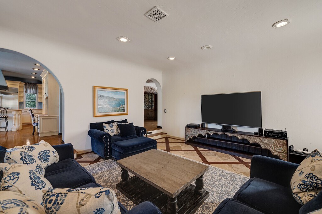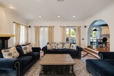 Beautifully furnished Lunada Bay home offering approximately 3,600+ sq ft of living space with 5 bedrooms and a well-designed, functional floorplan. Featuresinclude hardwood floors, multiple fireplaces, and abundant natural light throughout. Formal entry opens to a spacious living room, with adjacent dining area and alarge kitchen complete with center island, stone counters, and butler’s pantry, flowing seamlessly into the family room. Flexible layout includes a main-levelbedroom and bath, ideal for guests or office use. Upstairs primary suite features a fireplace, walk-in closet, and spa-style bath with dual sinks, soaking tub,separate shower, and heated floors. Four of five bedrooms are connected to bathrooms. Laundry room conveniently located upstairs. Private backyard designedfor indoor/outdoor living with saltwater pool and spa, patio areas, and lush landscaping backing to adjacent greenbelt for added privacy and open views.Additional highlights include zoned heating and A/C, double-paned windows, and attached garage with driveway parking. This home is available furnished orunfurnished. Located in the desirable Lunada Bay area of Palos Verdes Estates near parks, hiking trails, and the coastline.