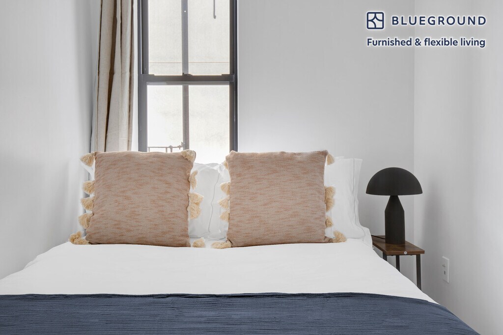 Show up and start living from day one in New York with this sophisticated two bedroom Blueground apartment. You’ll love coming home to this thoughtfully furnished, beautifully designed, and fully equipped Cobble Hill home. (ID #NYC728) The advertised rate of $4,520/month is the lowest available price, based on a 12 month(s) stay with a move-in date of December 21, 2026. Rates vary depending on the duration of stay, season, and other parameters. For exact pricing and additional pricing components, please visit our website and enter your desired move-in and move-out dates. The rate is applicable when billed upfront; it can be higher if billed in multiple payments. Brokers are welcome to reach out. Were you looking for an unfurnished lease? Try Blueground instead and upgrade from unfurnished to furnished living: - Furnished at rates comparable to unfurnished - No setup or furniture costs - save thousands - Move-in ready - save time, just bring your suitcase Designed with you in mind Thoughtfully designed with bespoke finishes, modern furnishings, and a fully equipped kitchen, you’ll enjoy that “I’m home” feeling with this Blueground apartment. Whether you’re lounging in your stylish living room streaming the latest and greatest entertainment on the smart TV or premium wireless speaker, or getting some well-earned rest on the superior quality mattress with luxury linens, you’ll fall in love with everything this Cobble Hill apartment has to offer. This apartment also offers in-apartment laundry. Sleeping arrangements Queen Bed, 63in/160cm Double Bed, 55in/140cm Amenities Building amenities unique to this two bedroom apartment include an on-site: - Dryer - Washing machine Arrival and ongoing support The entire apartment is yours to enjoy! Throughout your stay, you’ll have access to our Client Experience team through the Blueground App. You can schedule additional cleanings, submit maintenance requests, and view our neighborhood recommendations with just a few taps. We’ll share all details upon confirmation of your stay. Ideally Located This furnished apartment is located in Cobble Hill, an upscale residential neighborhood with a historic feel. Featuring picturesque rowhouses and brownstones as well as trendy dining and shopping options, this pedestrian-friendly area beautifully balances past and present. There are traditional butcher shops, like Paisanos, close to contemporary favorites, such as Trader Joe’s. The area is rich in leisurely activities, with a variety of first-run and independent films shown at Cobble Hill Cinemas, and both classics and best-sellers found at the local bookshop, Books Are Magic. Cobble Hill Park lies in the center of the neighborhood, a small green space for quiet relaxation. For convenient commuting, the neighborhood is connected to the rest of the city by several subway lines and bus routes. Other things to note This Blueground apartment has flexible lease options, allowing you to book it for one month, a year, or more. Please keep in mind that this is a walk up building. Brokes CYOF. We take great pride in ensuring every photo displayed is shot in our own units with our actual furnishings. That said, we regularly refresh our decor and furniture arrangement, which may differ from what’s pictured. [SI]