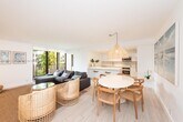 Fully remodeled seasonal rental at Botanica, within the exclusive Key Colony community. 2 bedrooms + ENCLOSED w/ window & balcony access. Beautifully decorated and thoughtfully furnished, it features a spacious living room with comfortable seating and a large TV, an open kitchen with stainless steel appliances, bar with stools, and dining table for 6. The balcony overlooks lush gardens, creating a serene retreat. The master suite includes a walk-in closet, double sinks, and shower; the second bedroom offers two full beds; the den has a twin bed expandable to a queen. Key Colony provides beach access, lap pool, pool bar, gym, playground, market, 24-hour security and more. Seasonal only, 90-day minimum. Winter Nov–Mar $9,000/mo.