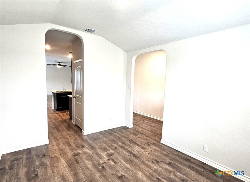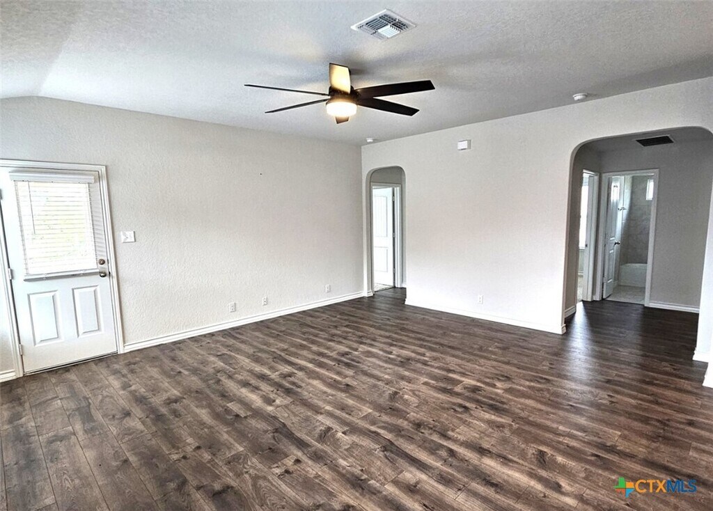 Single Story Home with 1651 square foot,3-bedroom,2 bathroom,2-car garage layout * This layout features a separate dining space that leads to an open kitchen * The kitchen includes plenty of cabinet storage,granite countertops,subway tile backsplash,stainless steel appliances,gas cooking range,and deep kitchen island facing the living room * The large first bedroom suite is located off the family room and features double vanity sink,separate tub and walk-in shower,private water closet,and a spacious walk-in closet * Spacious secondary bedrooms with large closets,a second full bath with plenty of natural light,and a utility room are conveniently located off the family room * Additional features include tall 9-foot ceilings,2-inch faux wood blinds throughout the home,luxury vinyl plank flooring in the entry,family room,kitchen,and dining area,ceramic tile in the bathrooms and utility room * Homes comes with a refrigerator,washer,and dryer * Relax outside on the large covered patio over looking a green belt area located off the family room and enjoy full yard landscaping and full yard irrigation. Close to Randolph AFB,Community Pool,Park. **No pets**