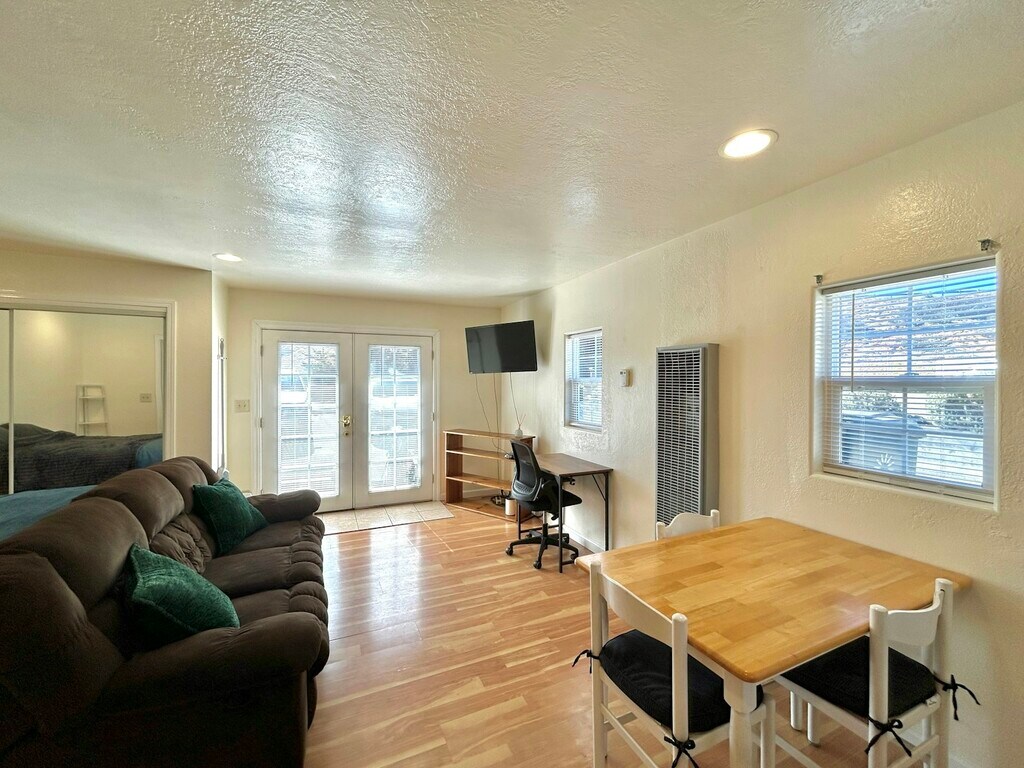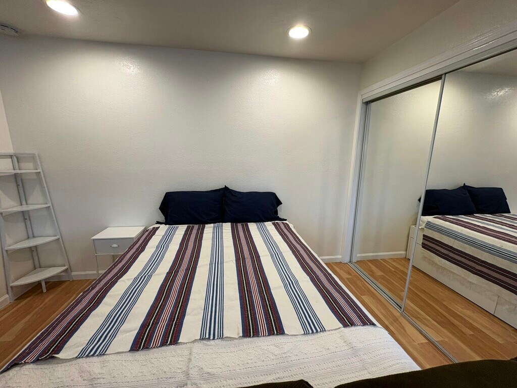 Darling furnished studio in Marina. $2100 a month including utilities. Not attached to an apartment building. Security deposit $2100. Close to shopping, freeway, beach, walking biking trail to Monterey. No pets. Looking for one person or a couple. Quiet neighborhood. Landlord owner lives next door. Furnished studio. One year old gas stove with oven, fridge, microwave, flatscreen TV, one year old queen size bed with built in drawers under the bed. Double mirrored closet. Kitchen table with 3 chairs. Full bath with tub and shower. laundry room on site. off street parking by front door. Call owner Laura to set up viewing appointment. Available now!