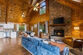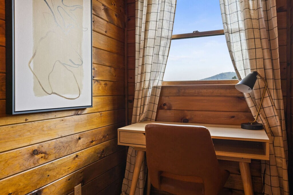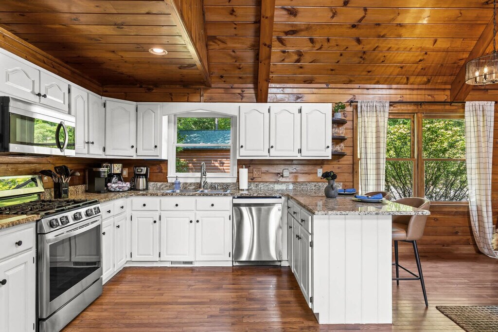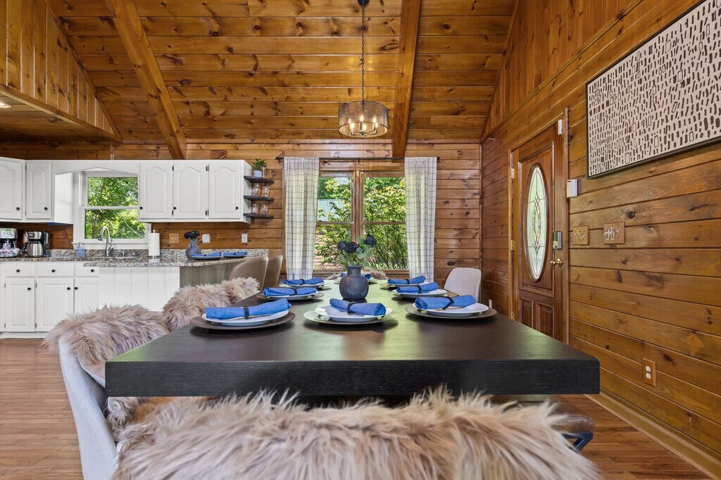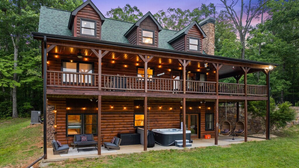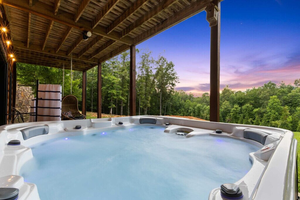 Feel at home in this 5-bedroom home nestled in the heart of scenic Blue Ridge, Georgia, offering a blend of rustic charm and modern comfort with mountain views. This home comfortably sleeps up to 18 guests. The open-concept layout is designed for connection, featuring a fully stocked kitchen, a cozy living room with a 50” smart TV and an indoor fireplace, and a game room with a pool table, arcade machine, foosball table, air hockey, kid-friendly ping pong, leather sofa, smart TV, and fireplace. Step outside to an expansive deck with a bar, outdoor dining area, BBQ grill, and hot tub. Also enjoy board and card games and a giant connect 4. Up to 2 dogs are allowed for a fee of $125 per stay. Nearby attractions include the Blue Ridge Scenic Railway, Mercier Orchards, Swinging Bridge / Fall Branch Falls, Blue Ridge Aerial/Adventure Park, Chattahoochee National Forest Trails, Lake Blue Ridge, Aska Trails Recreation Area, and Fannin Brewing Company. Explore scenic hiking trails like Long Creek Falls, Benton MacKaye, and the Swinging Bridge Trail. Enjoy local dining at The Black Sheep Restaurant, Rum Cake Lady Cuban Cafe, Southern Charm Restaurant, BumbleBee’s Cafe, Blue Jeans Pizza & Pasta Factory, Chester Brunnenmeyer’s Bar & Grill, Ferraro’s & Bites, The Falls at Blue Ridge (Ellijay), Canterberry’s, and Bigfoot Biscuit (Blue Ridge). Check-in is at 4pm and check-out is at 10am. No cats are allowed. Guests must be 21 years or older to book this property. No parties are allowed, and violations may result in immediate termination of the stay. Please make sure all trash is placed in tied, closed trash bags before being put into the bear-proof trash cans provided. If the team reports otherwise a $85 fine will be added to your reservation. Includes a dedicated workspace. [SI]