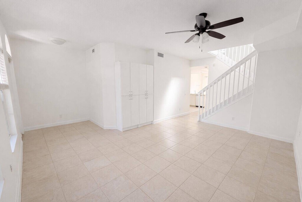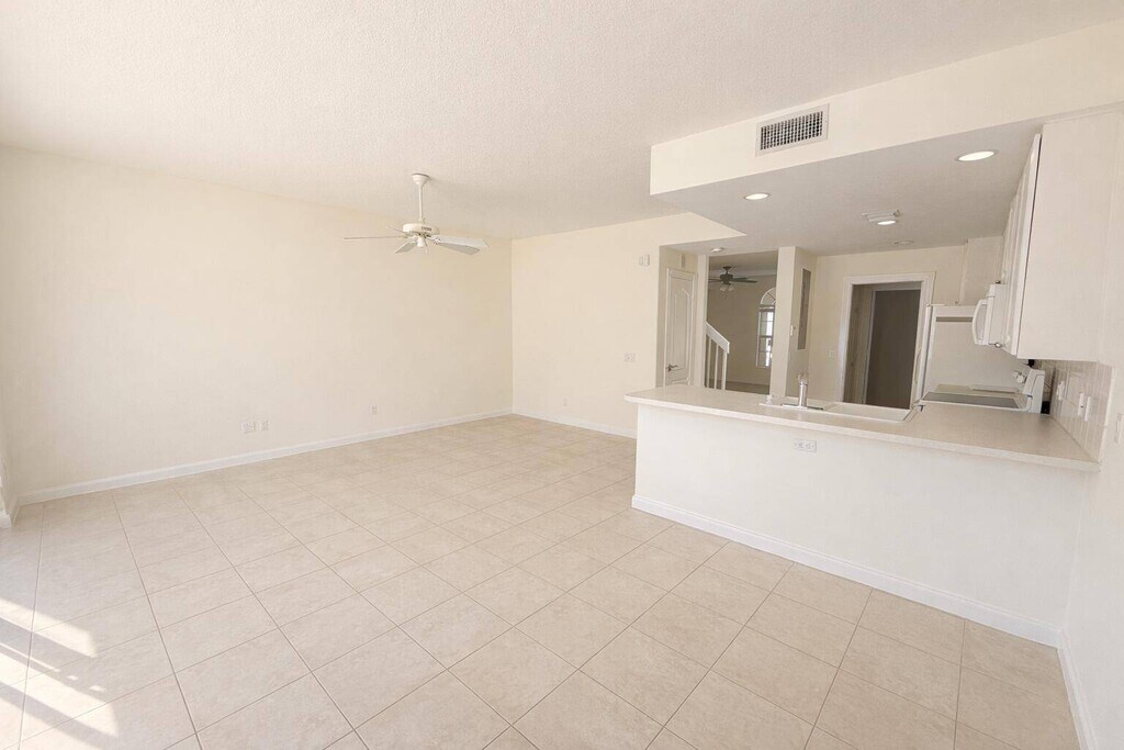 Vacant, New floors upstairs The whole place has been freshly painted as well as the garage Luxury, light-filled end-unit town home featuring 3 bedrooms, 2.5 baths, and a 2-car garage, ideally located in the highly desirable Cambridge community near the heart of Abacoa. This spacious residence offers abundant natural light, beautiful arched windows throughout, and a large private open patio-perfect for outdoor living. The kitchen provides ample cabinetry and generous counter space, ideal for both everyday living and entertaining. The expansive primary suite includes walk-in closets and access to a second-floor balcony. The primary bathroom features an oversized vanity with dual sinks and a relaxing soaking tub.