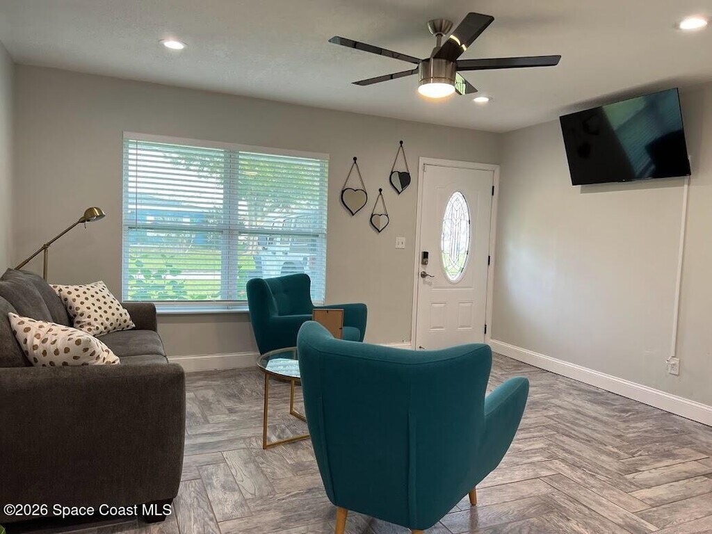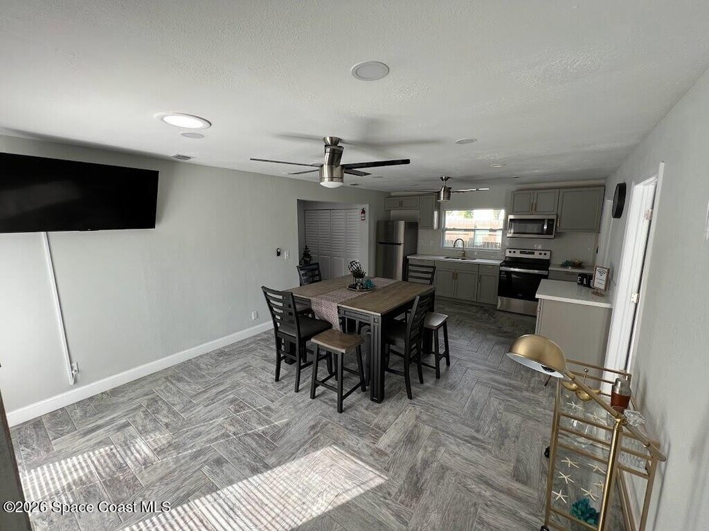 Single Family Home for rent (short term rental or long term) minimum 2 months. All utilities included. 5 minutes away from the Melbourne Downtown. Everything inside is clean,new & ready for you. This home is located 5 minutes away from the Melbourne Airport,5 minutes from Holmes Regional Medical Center,8 minutes from Indialantic Beach and Canova Beach. The Patio,with new turf,is the best. You can play Soccer,Volleyball,Pickleball,Cornhole and after you can take an outside shower. VERY CLEAN PLACE. The house has 4 bedrooms and is described as Space Room,Mickey Mouse Room,Harry Potter Room and Star Wars Room,all with Galaxy sky light projector,charging station and TV with HDMI wires to connect any device. MLS # 1070085